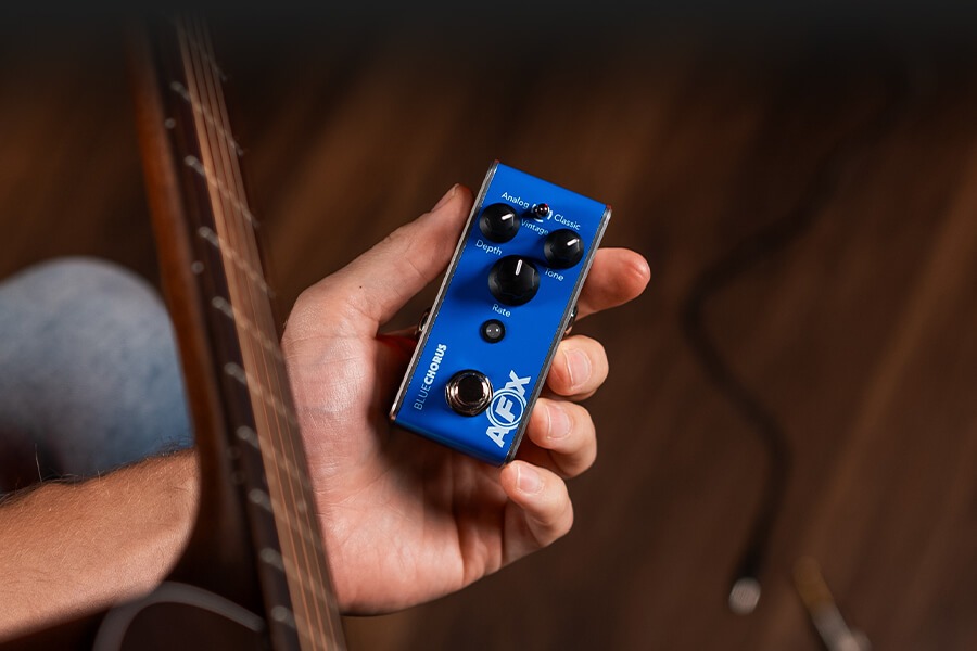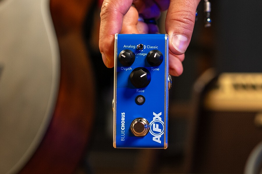 かすかなダブリング効果から、背後にいるかのような完全なアコースティック・アンサンブルまで、幅広い効果を生み出します。AFX BlueChorusは、エフェクトのスピードを設定するRateコントロールと、ミックスに完璧にブレンドさせるDepthコントロールを備えています。
