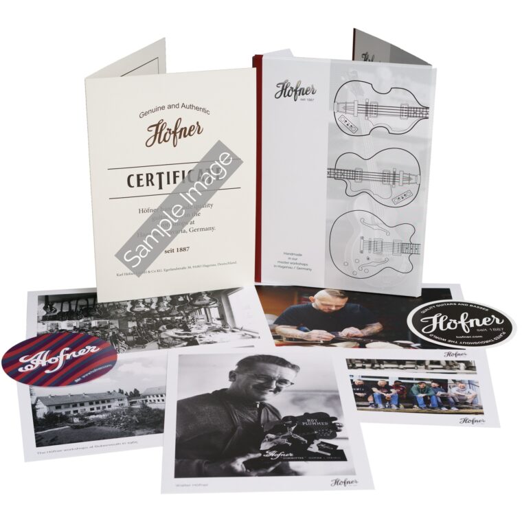 Club Bass 'Vintage' H500/2-RLC-BK-0 希望小売価格 ¥536,800(税込) EAN: 4250358624861 スプルース・トップ、フレイムメイプル・サイド&バックのホロウボディ。ビーチ材で補強されたメイプル3ピース・ネック、ローズウッド・バインディング指板。オーセンティック・エイジド加工を施したブラック・フィニッシュ。ナット幅 42mm、スケール長 762mm。ヘフナー・ヴィンテージ・ストラップ、ヘフナー・ケース、証明書フォルダー付属。