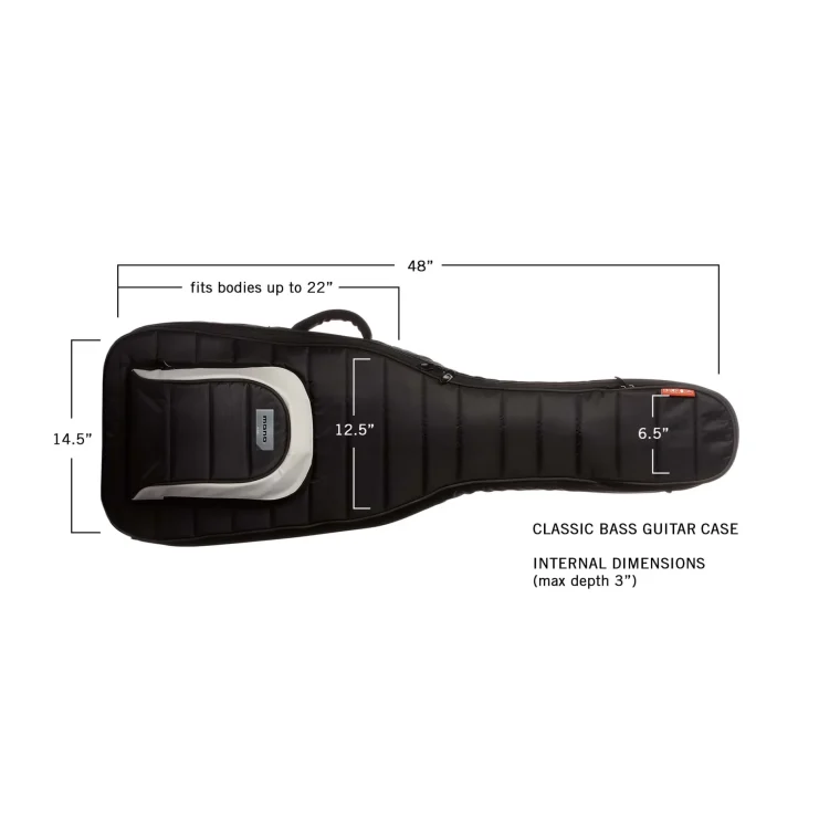 下記の寸法はケースの内部容量を示しています。お使いのベースが収納可能か不安な場合は、念のため最大寸法を超えないことをご確認ください。このケースは、フェンダー、アイバニーズ、フォデラ、ワーウィック、トバイアス、ヤマハなど、標準的なボディサイズのエレクトリックベースに対応するよう設計されています。