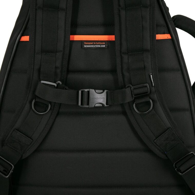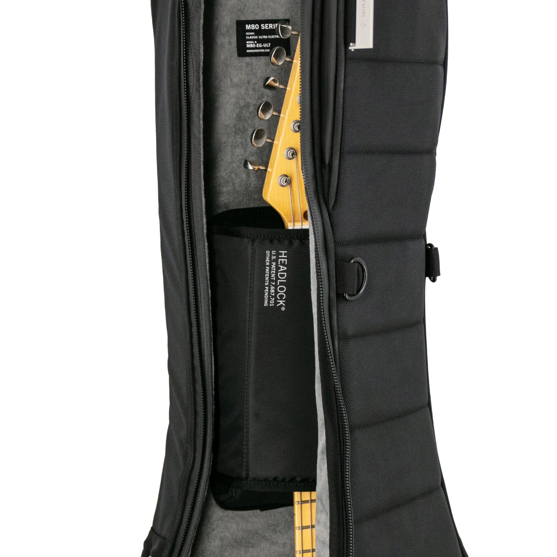 中核となるのは、ヘッドストックへの衝撃から楽器を守る MONO 独自の Headlock® ネック・サスペンション・システムです。内部には Apple AirTag などのトラッカーを収納できる控えめなポーチも備えています。外装には耐水性に優れた 1680D バリスティックナイロンを使用し、防水ジッパーと反射ストリップを装備。雨天時の搬入から長距離ツアーまで、あらゆる状況に対応します。
