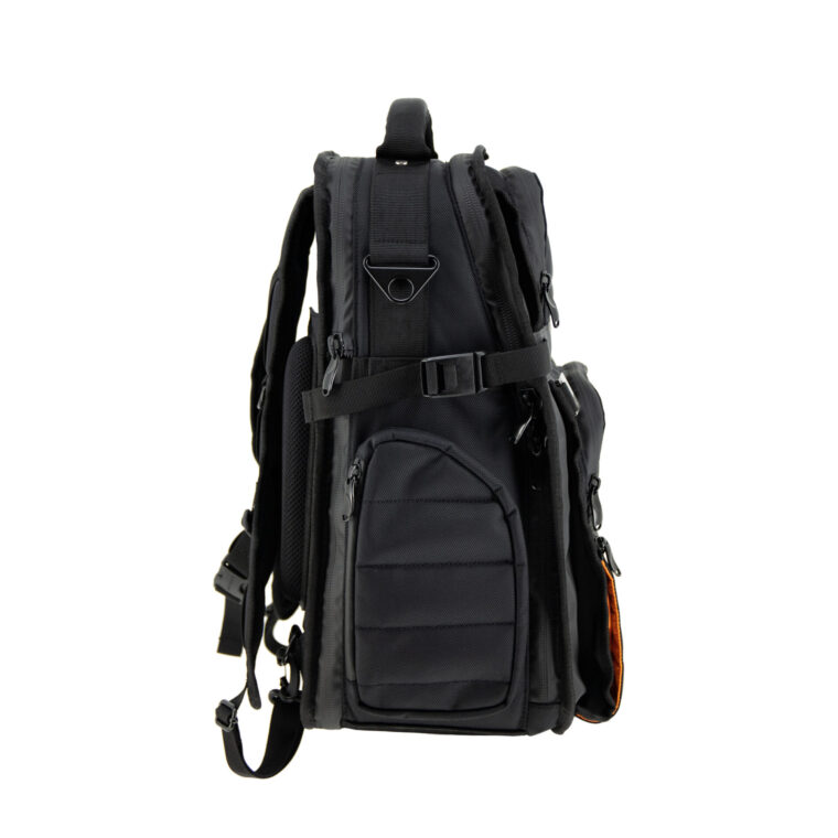 Sharkskinも優れた素材ですが、FlyBy Ultraにはさらに画期的な「1680Dバリスティックナイロン」を採用しました。耐水性に優れ、極めて頑丈で、なおかつ100%アニマルフリー。この素材こそ、FlyBy Ultraに最適な選択肢です。さらに、一部の外装パネルにはリフレクタートリムを施し、アンダーグラウンドなギグや深夜の移動でも頼れる相棒となるデザインに仕上げました。