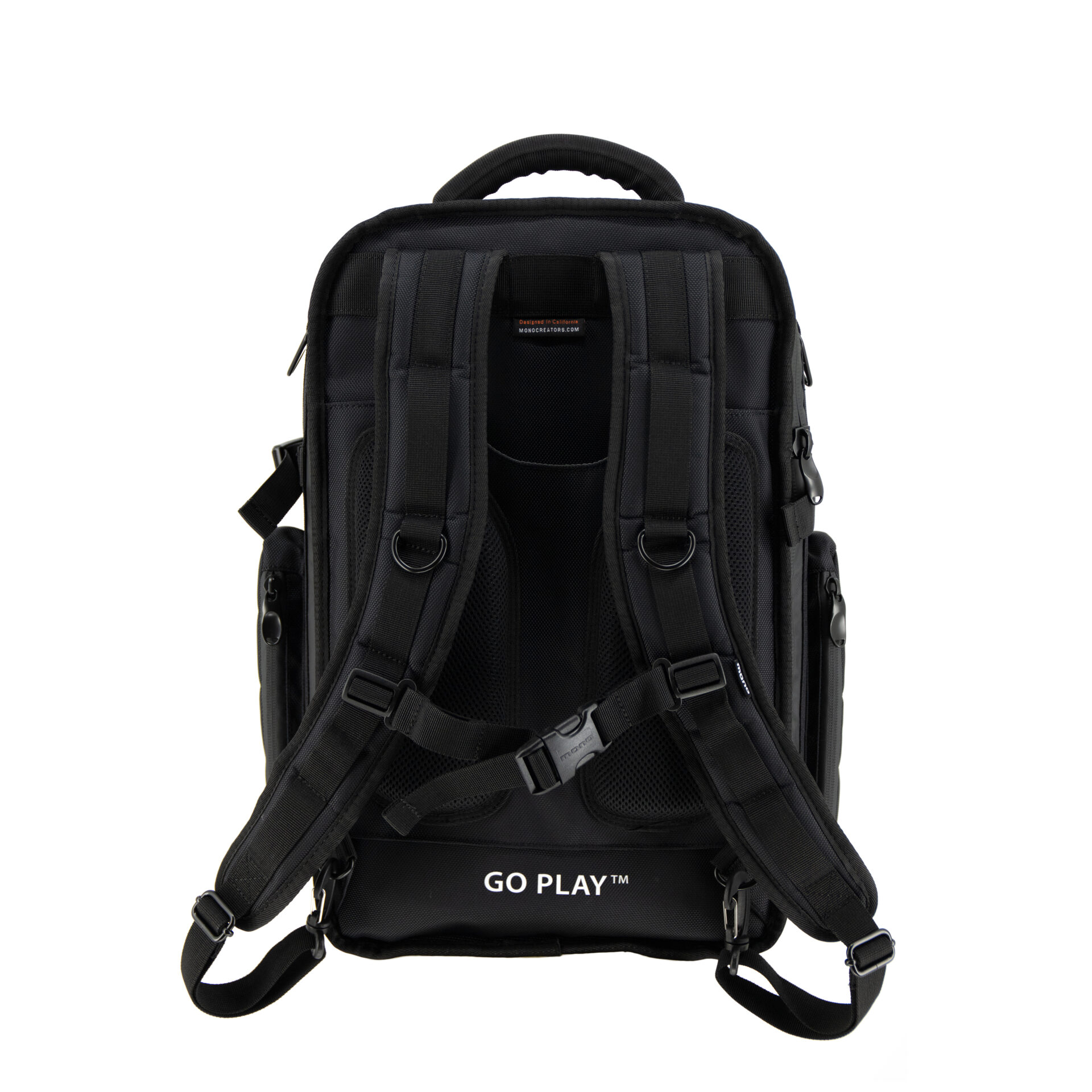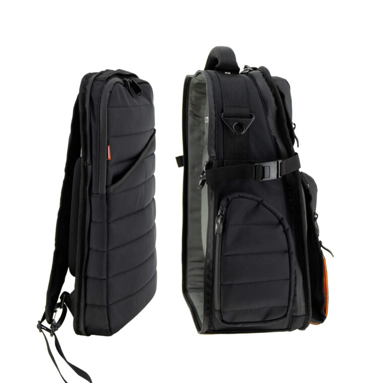 FlyBy Ultraは、最大17インチのノートパソコン、小型のレコードコレクション、Seratoスタイルのインターフェースコンポーネント、コントローラー、ハードドライブ、ヘッドホン、ケーブルを収納可能です。必要に応じて、取り外し可能なラップトップバッグをパックから切り離すことができます。