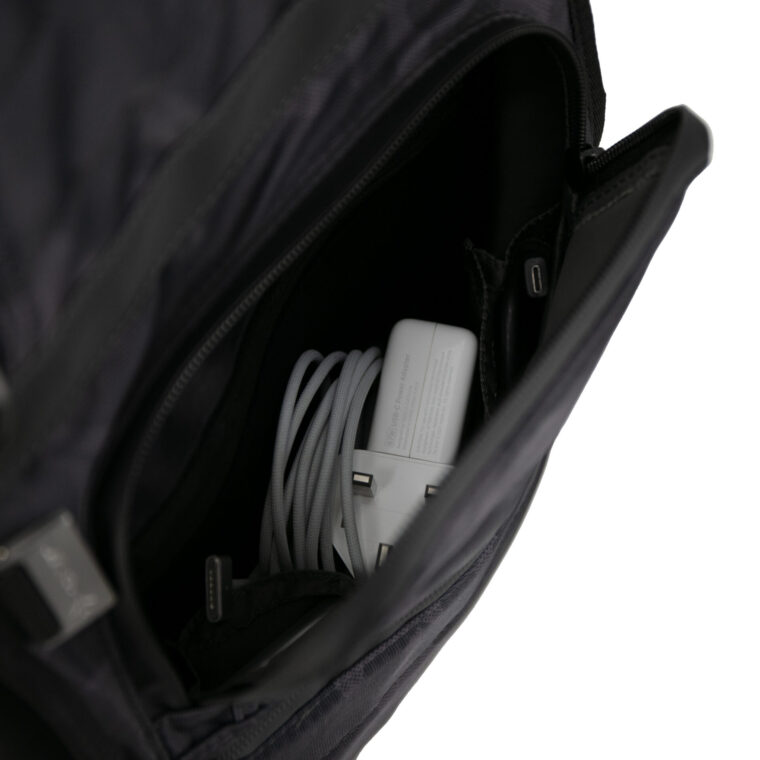 プロ向けのヒント:メッセンジャースタイルで持ち運びたい場合は、バックパックストラップをラゲージ・パススルーの下に収納し、クロスボディストラップをスナップで簡単に装着できます。