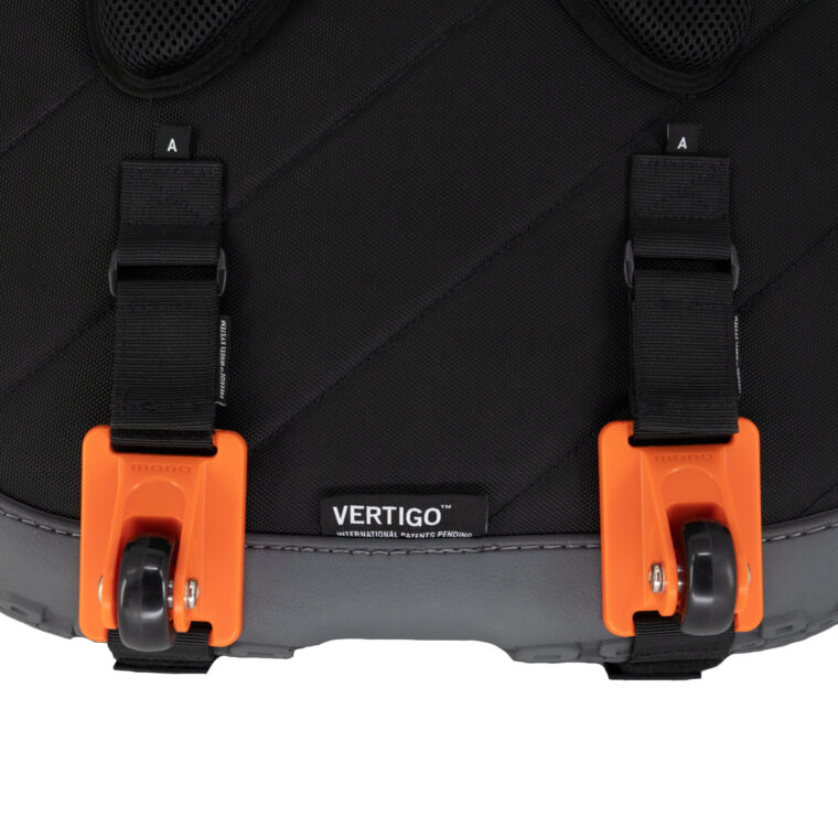 サイドリリースバックルとウエストベルトにより、Vertigo™ Ultraは移動中も常にしっかりと固定され、最大限の保護を実現。それでいて、利便性と快適さも損ないません。また、取り外し可能なストラップを背面ポケットに収納できるため、FREERIDE™ Wheel Systemを使用する際には、余計なストラップが邪魔にならずスッキリとした移動が可能です。