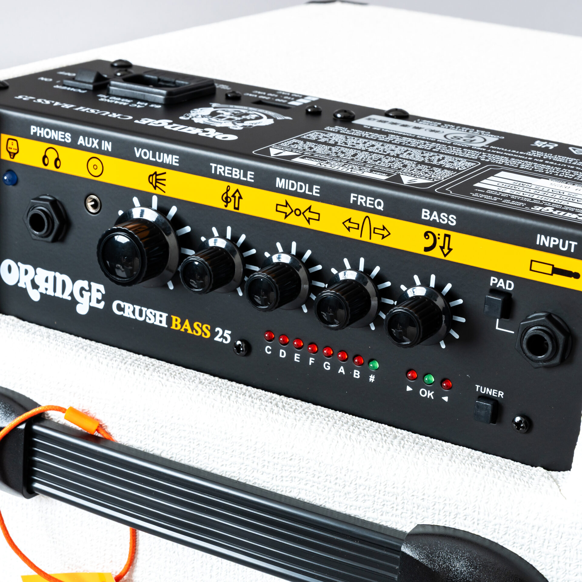 バンドでのベースサウンドに妥協しないなら、自宅での練習でも同じはず。Crush Bass 25はCrush Bassアンプシリーズの中で最もコンパクトなモデルですが、Orange Ampsが世界中の伝説的なベーシストに選ばれる理由でもある、温かみのある丸みを帯びたトーンキャラクターをしっかりと継承しています。