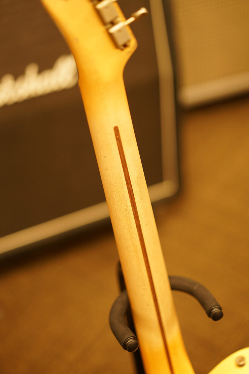 その52年製テレキャスターをモチーフに、家具職人からマスター・ビルダーとなった異色の経歴の持ち主Dennis Galuszuka氏が手掛けた1本。