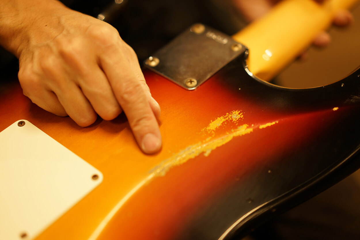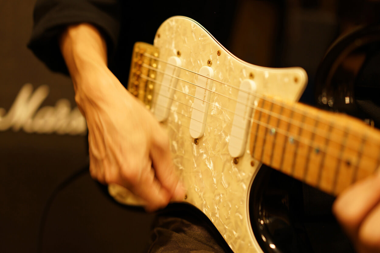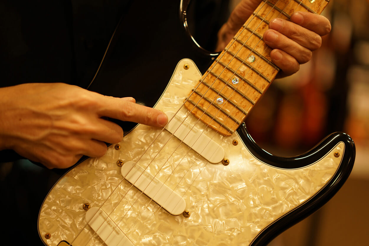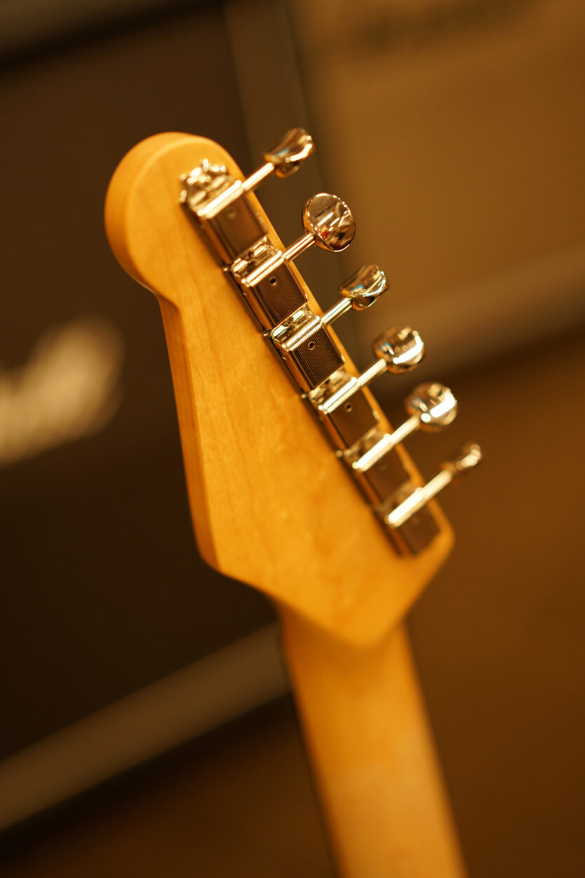 数々のヴィンテージ・ギターのリペア作業やフェンダー社で培った技術、経験を基に、とても完成度の高いストラト・モデルを作り上げています。