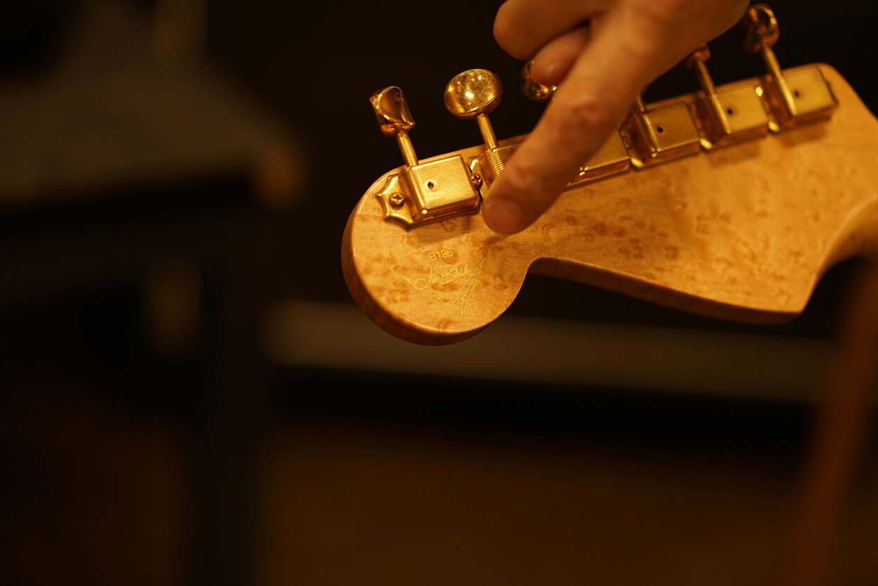 歴代Fender Master Builderの中でも取り分け人気の高いJ.W. Black氏がFender社在籍時に手掛けた1本。自身も深く携わっていたEric Clapton氏のモデルをゴールド・ハードウェア、極上のバーズアイ・メイプルなど用い製作したハイグレード仕様です。