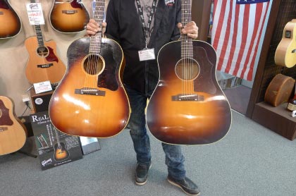 1959年製J-45を持ち込み、当社Gibsonアコースティックチームが集合し細部まで比較検証いたしました。