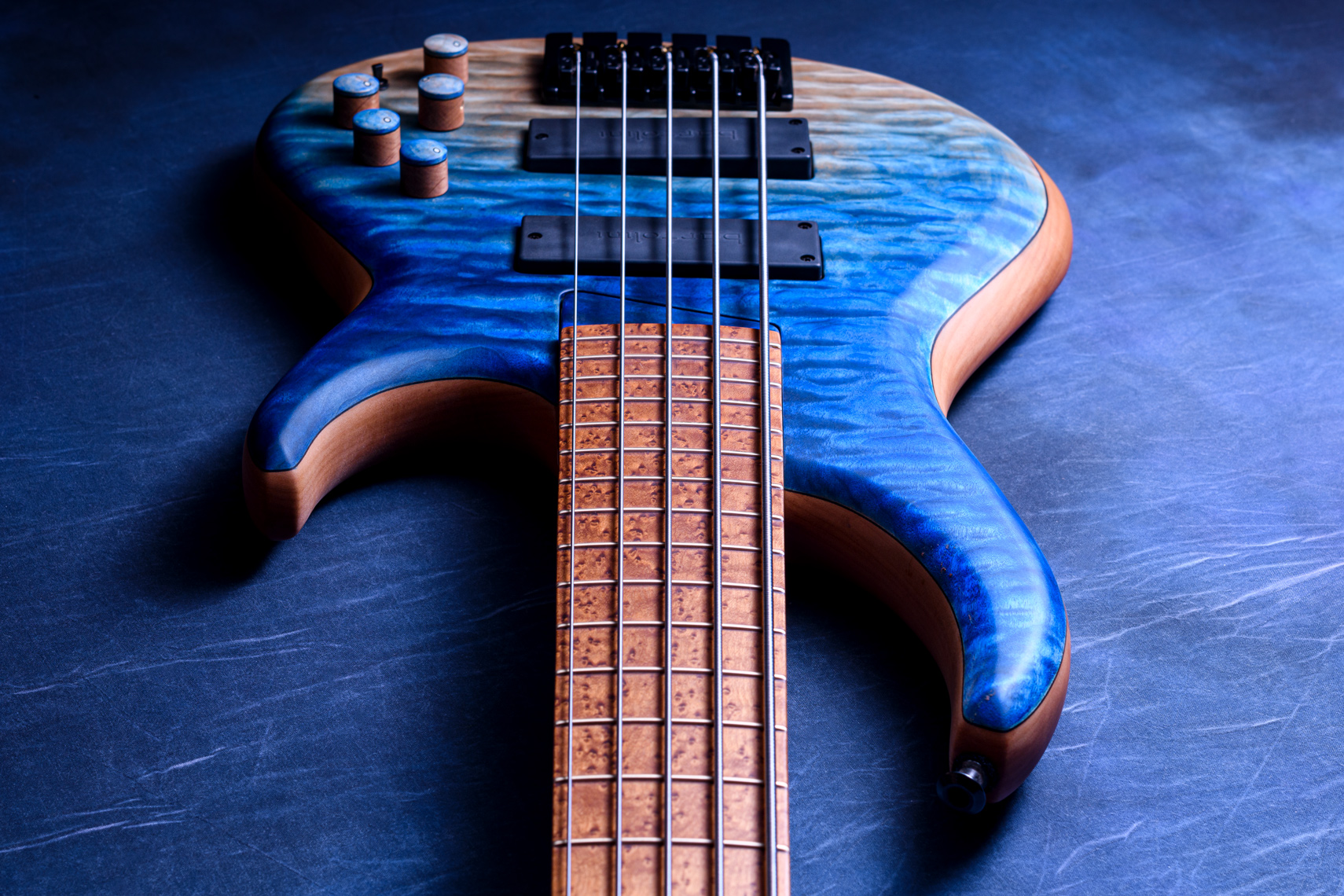 Quilt Maple Top Colored Ocean Blue Fade Dark Horns