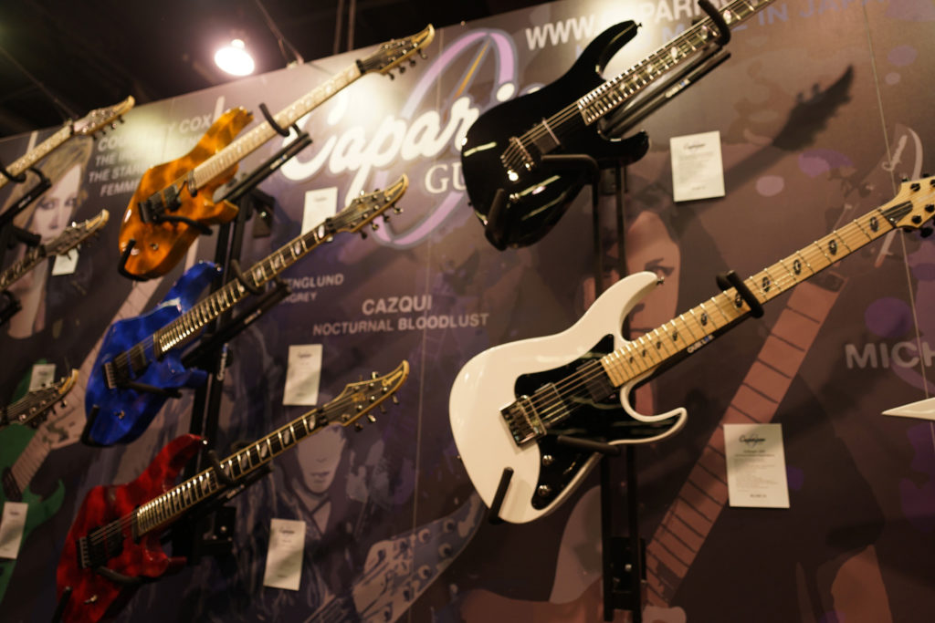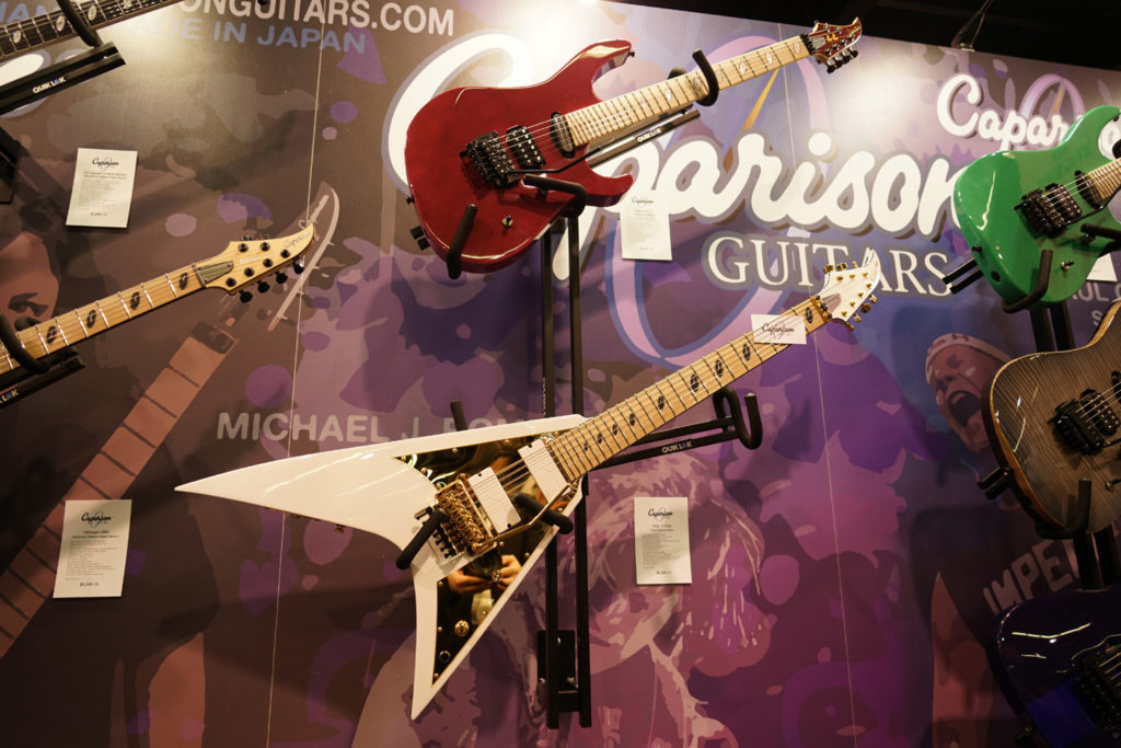 新たに発表されたモデルのひとつが下写真中央のVシェイプのモデル。元NOCTURNAL BLOODLUSTのCAZQUIモデル「Orbit7-CZQ」だ。