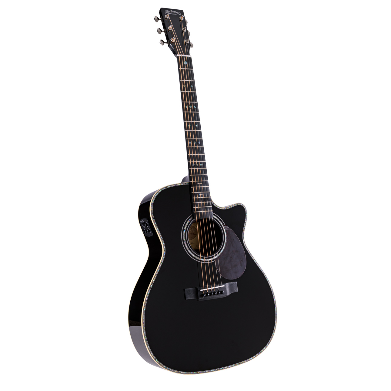 この価格で縁取りにアバロン貝を使用した豪華な仕様!ステージ映え間違いなしカッタウェイタイプのエレアコシリーズとなります。サイドのコントロールが使用時ブルーに点灯し、お洒落な雰囲気を演出します。