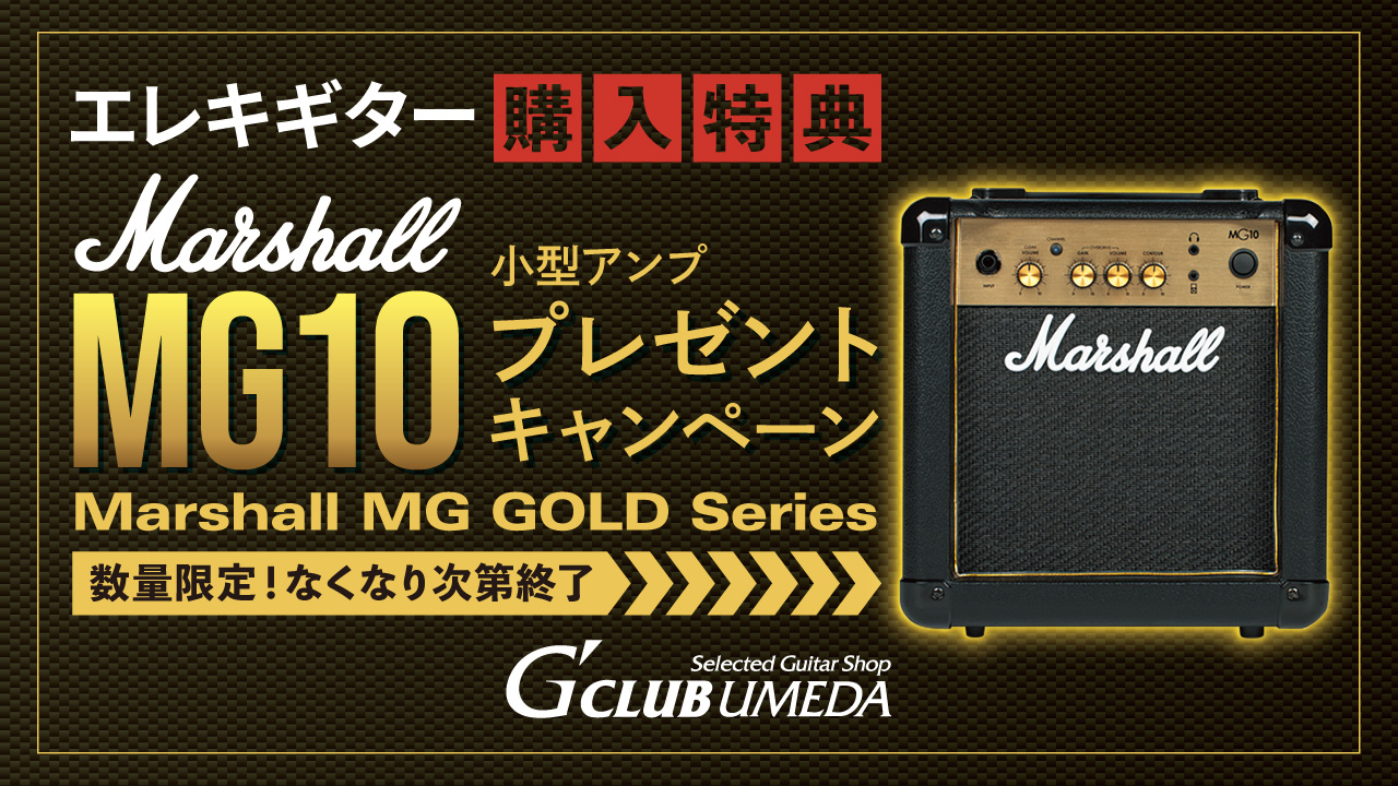 今だけ!20万円以上のエレキギター(新品)をご購入いただいた方に、自宅練習用に最適な小型アンプ・マーシャルMG10をプレゼントいたします!