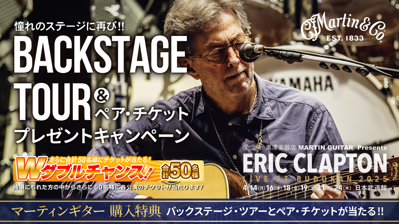 黒澤楽器店 MARTIN GUITAR Presents ERIC CLAPTON LIVE at BUDOKAN 2025 バックステージ・ツアー&ペアチケットプレゼントキャンペーン