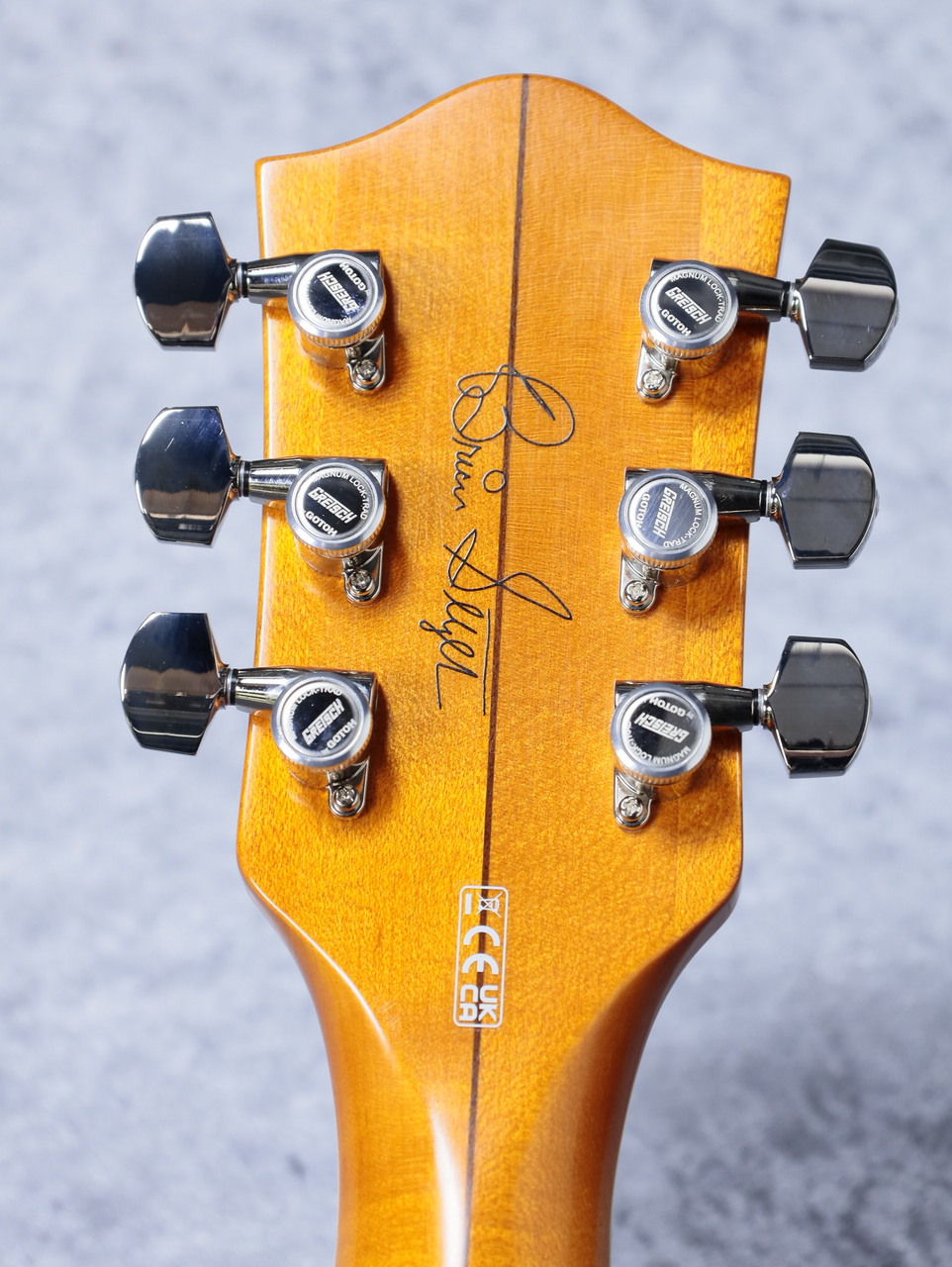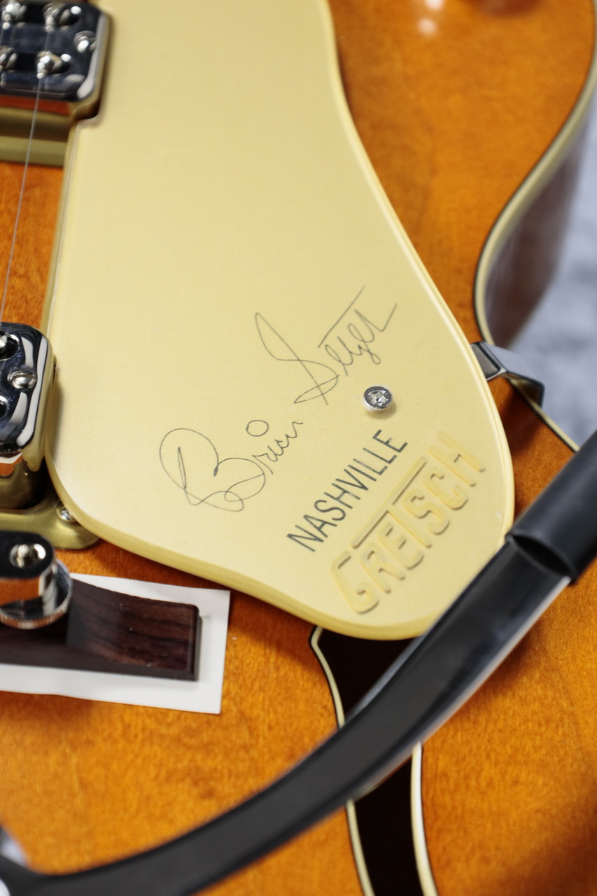 ヘッドストックにはBrian Setzerのサインプリント。マスターボリュームの位置も通常とは違い外側に寄っています。細かい再現はさすがです!ヴァイオリン奏法もしやすく、様々な場面で活躍してくれるはすです。