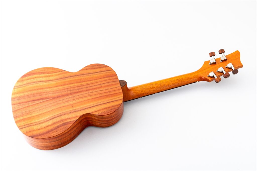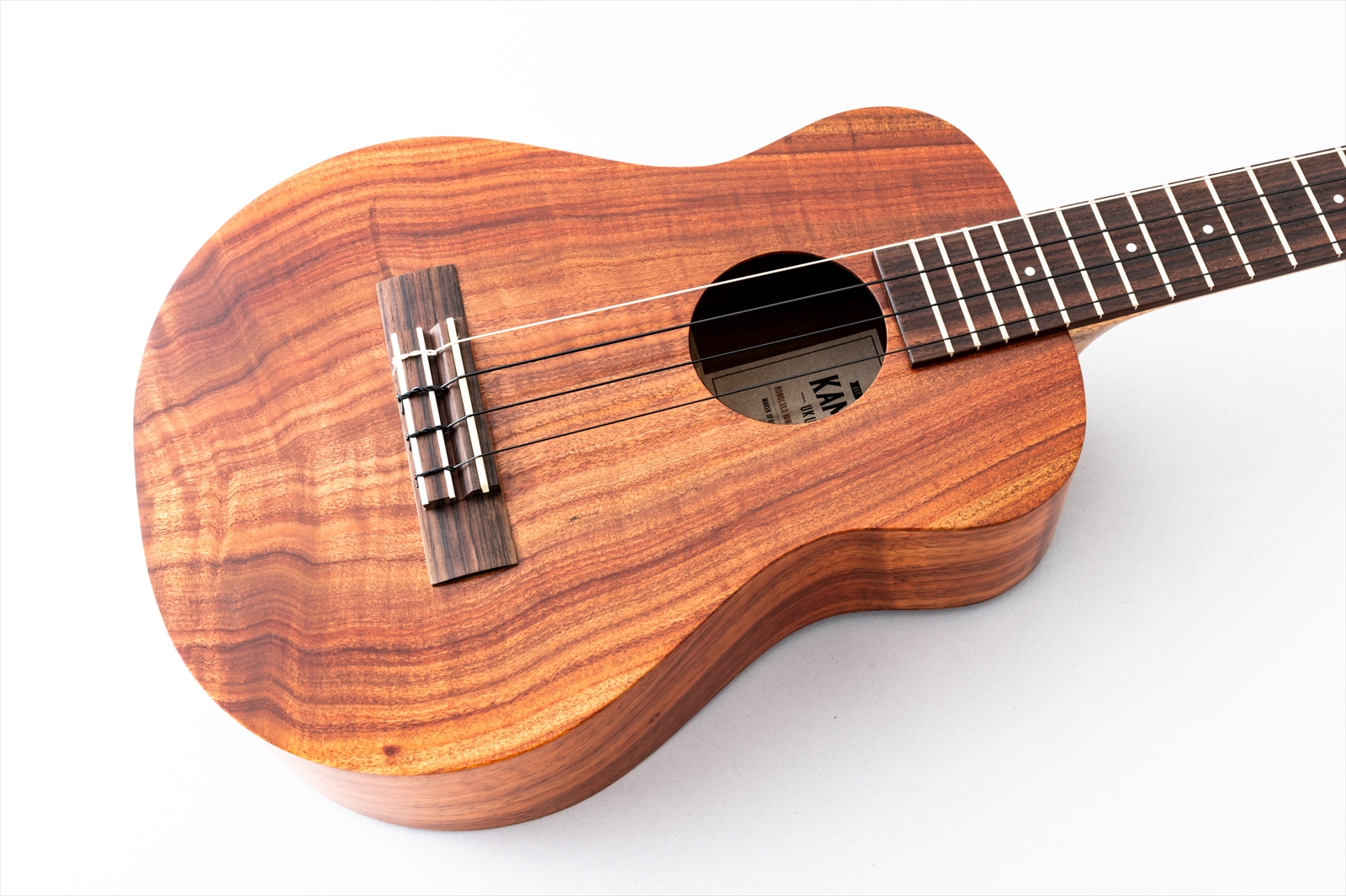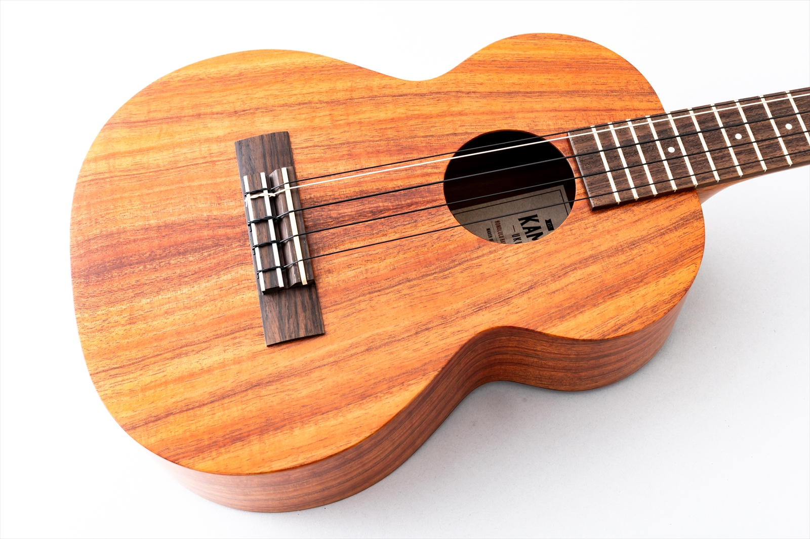 カマカの伝統的な「ベル・シェイプ」のウクレレにテナーサイズが加わりました。ボディの容積はHFのものと比べてやや大きい仕上がりです。ローGを標準弦とした深みのあるサウンドが特徴。