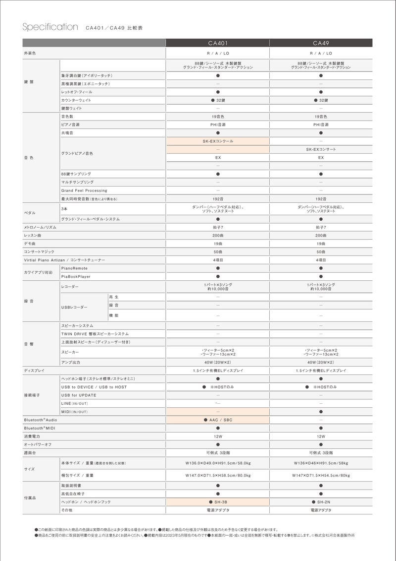 こちらが、前モデルのCA49とCA401の比較のスペック表です!