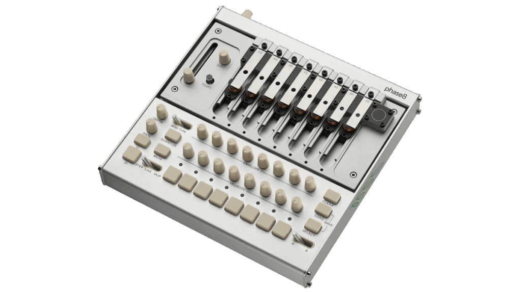 一見すると、どこか実験装置のような佇まい。そして音を出してみると、「これはいったいどういう仕組みなんだ?」と思わず構造を探りたくなる――そんな不思議な魅力を持った楽器 phase8 。