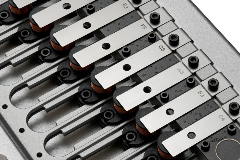 さらにユニークなのが、演奏中にレゾネーターへ触れることで音色に変化を与えられるという点です。振動している金属板に直接触れることで音の表情が変わるため、これまでの鍵盤楽器や電子楽器にはない、新しい感覚の演奏体験が楽しめます。