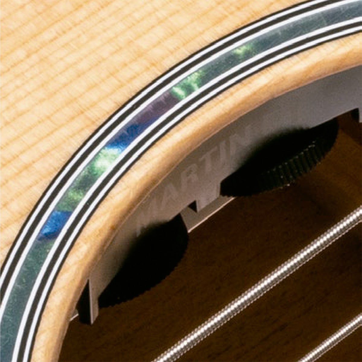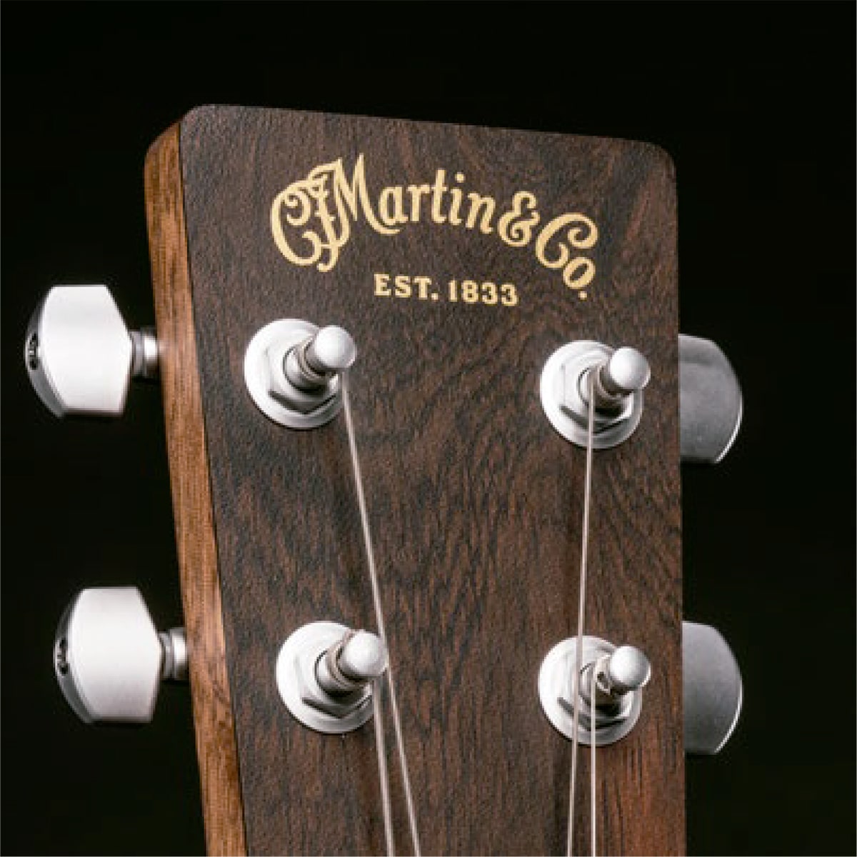 どこへでも持ち運べるコンパクトなボディサイズはそのままにフルスケールの24.9インチ、パフォーミング・アーティスト・テーパーネックに変更。薄型フィンガーボードにやさしく面取りされたエッジ、改良された弦間隔により、演奏の快適さも向上し、さらに、一部モデルには新しいサテン・クローム・チューナーを採用。すべてのJuniorシリーズには、『Martin E1エレクトロニクス』が搭載され、アンプに接続すればすぐに演奏が可能。内蔵チューナー、ボリューム、トーン、フェイズコントロールの直感的なコントロールにより、クリアで忠実なサウンドを実現します。ブラジリアン・ローズウッドパターンのHPLをヘッドプレートに、アバロン柄のロゼットやスロープド・モダン・ベリーブリッジ(共に一部モデル)を採用し、視覚的にもスタイリッシュな要素が加わっています。
