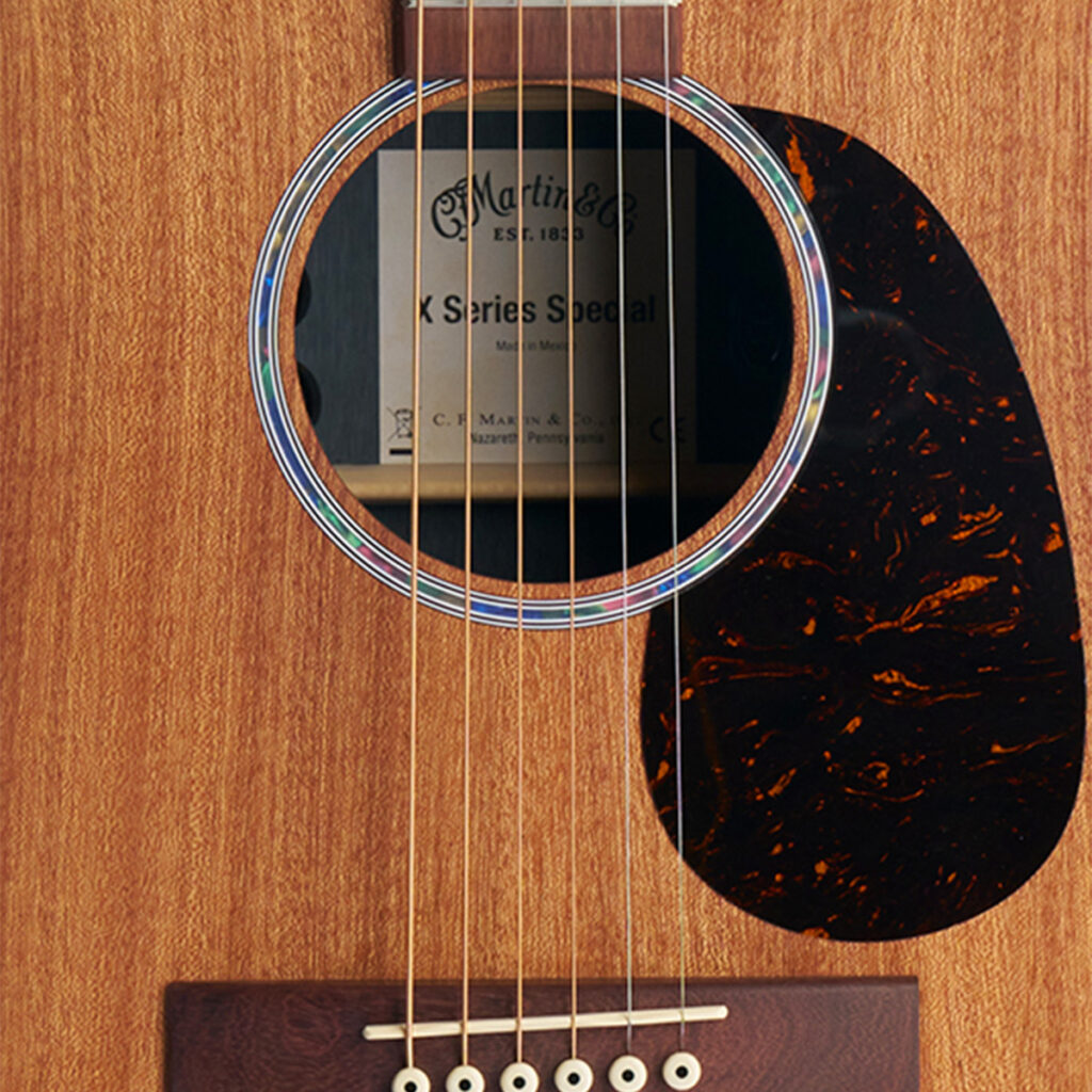 ソリッド・サペリ材のトップは温かみのある迫力の中音域を提供し、ジリコテ柄のHPL製ボディが耐久性とスタイリッシュな見た目を演出するグランド・パフォーマンス・モデル。ドレッドノートと000の中間に位置するバランスを目指して設計されたグランド・パフォーマンス・モデルは力強い音量、ダイナミックな音色、そしてバランスの取れた低音を実現し、さまざまな演奏スタイルに最適です。Performing Artist ネックプロファイルにより、スムーズでストレスのない演奏が可能で、カッタウェイ構造により高音フレットへのアクセスも容易です。Martin E1エレクトロニクス搭載のエレアコでボリューム、トーン、位相のコントロールに加え、内蔵クロマチックチューナーにより素早く静かなチューニングが可能です。