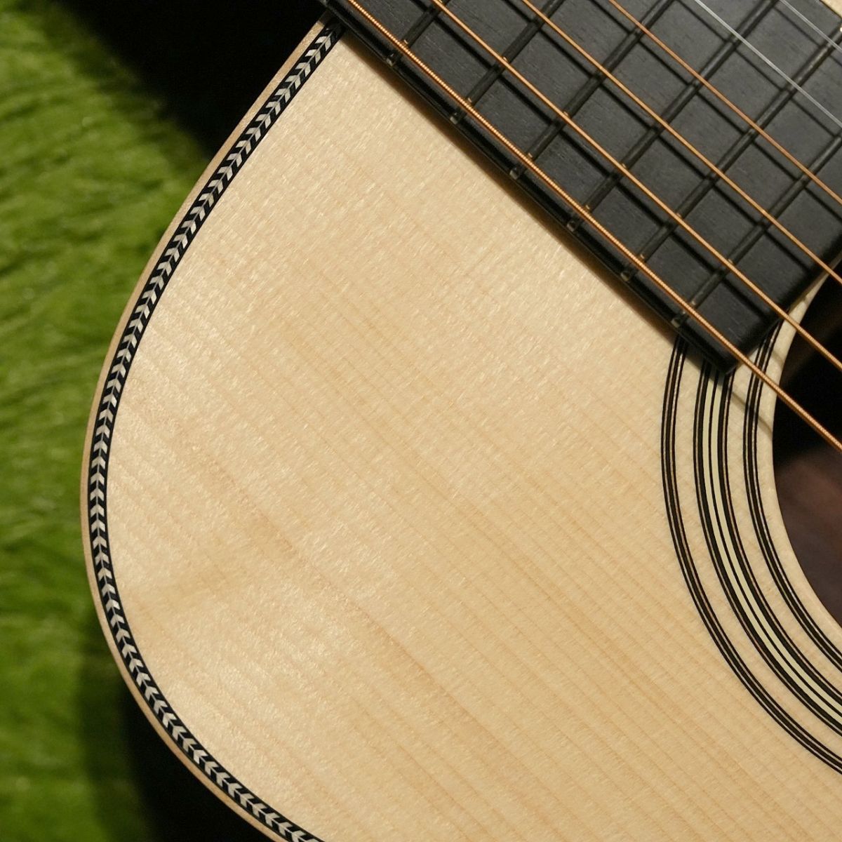 ドレッドノートの押し出しの強いサウンドに比べると、低~高音までバランス良く鳴り、コードストロークからフィンガーピッキングまで幅広く対応いたします。