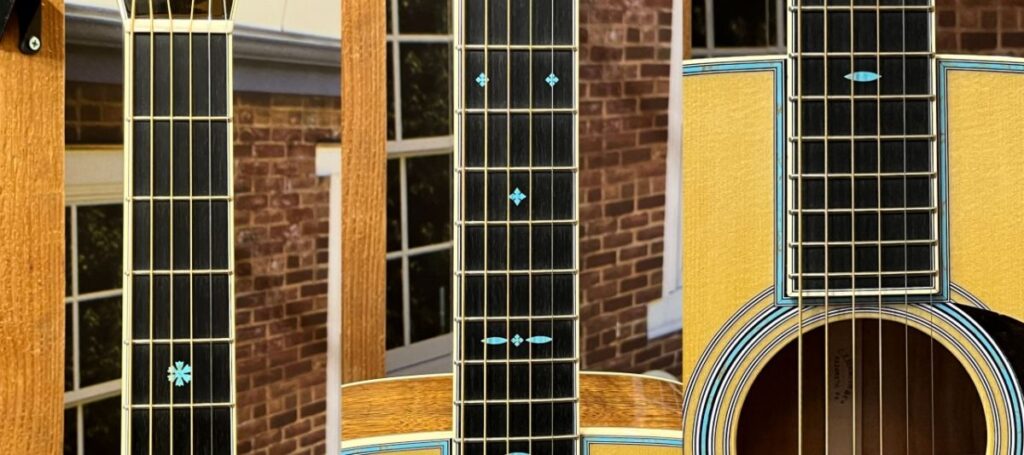 そしてルックス面での最大の特徴は、ロゼッタ、スノウフレイクのポジションマーク、ボディバインディングにターコイズを使用している点となります。非常に良いアクセントになっており、なんともオシャレです!