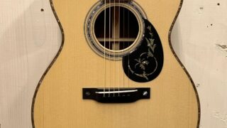材の構成は贅沢にプレミアムグレードのシトカスプルースTOP ×マホガニーSide&Back、ジュニュインマホガニーネック、エボニー指板、と本格的な材構成。
