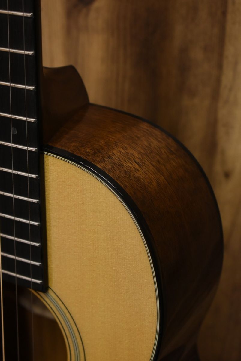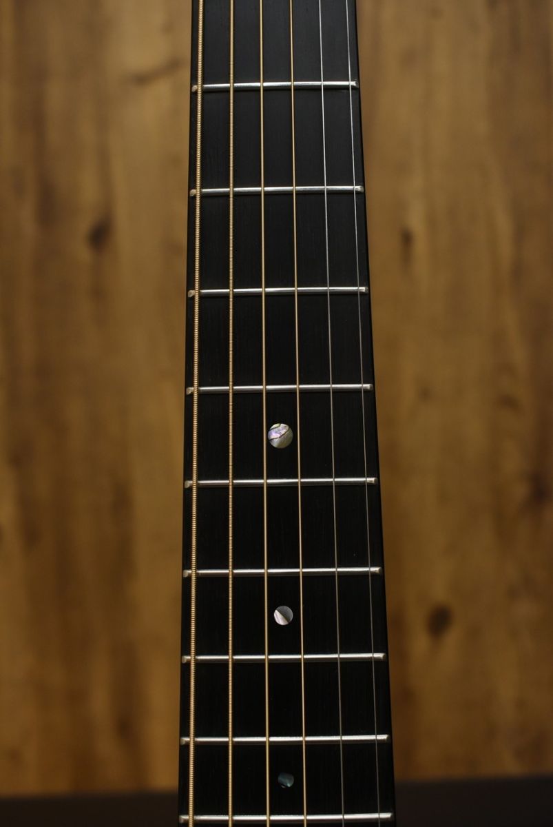 スプルースTOP、マホガニーSIDE&BACK、指板&ブリッジには黒々としたブラックエボニーを使用。