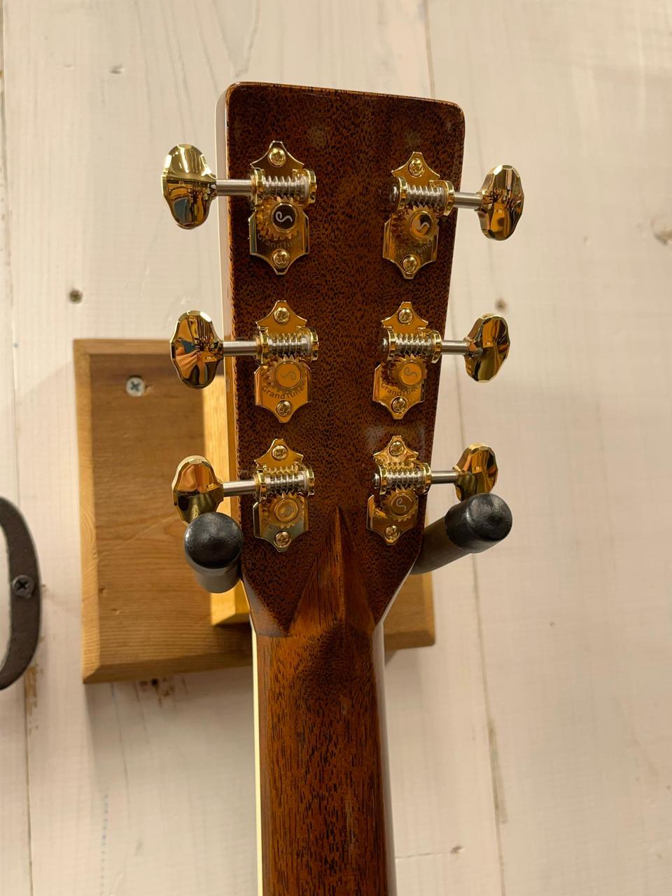 Martinバーチカルヘッドロゴ、ブラックポリッシュピックガード、シャーラーゴールドグランドチューンチューナー。