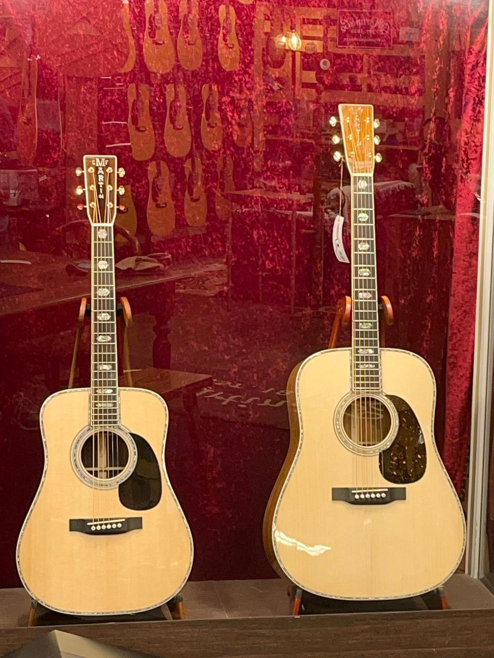 プレミアムグレード材、トップ、サイド、バックに惜しげもなく入るアヴァロン貝のパーフリングとフィンガーボードのヘキサゴンインレイ、贅の限りを尽くしたMartin D-45の豪華さはそのままです。