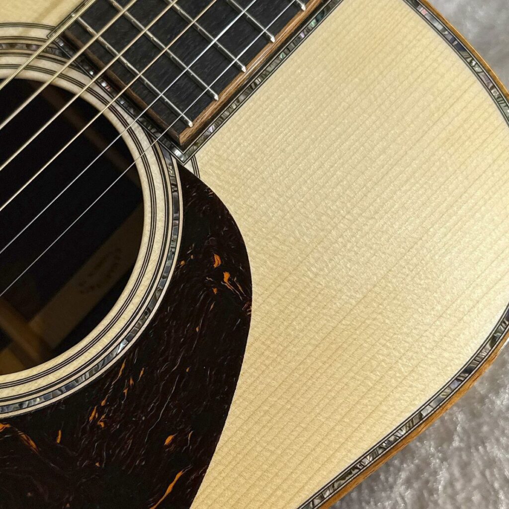 トップには、目の詰まったさすがプレミアムグレードといった極上のアディロンダック・スプルース、