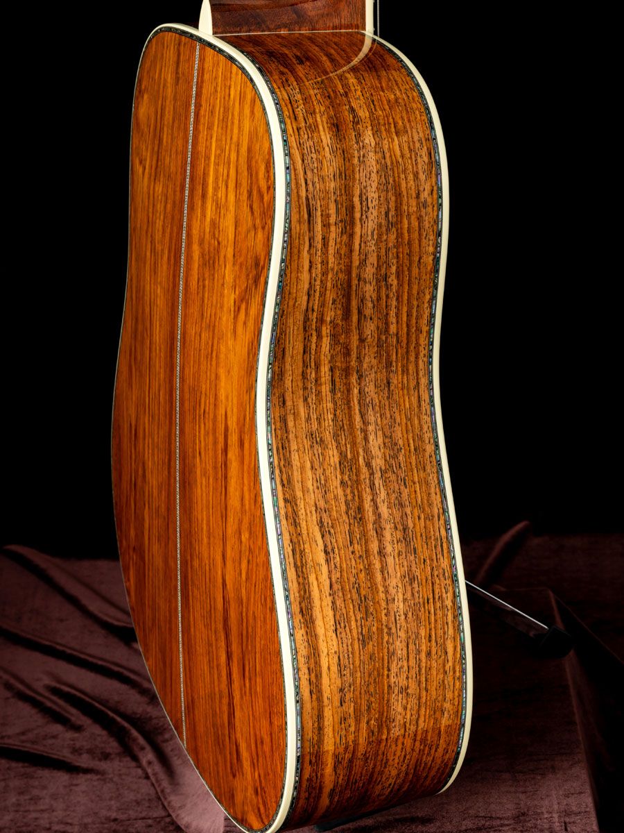 ハカランダに代わる材として近年注目を集めている高級木材『グアテマランローズウッド』をサイド&バックに、Top材にはプレミアムグレードのアディロンダックスプルースを贅沢に使用しスペシャルなサウンドに仕上がったカスタムD-45。
