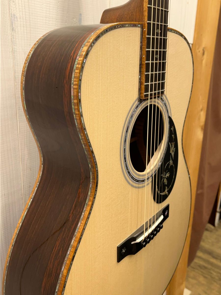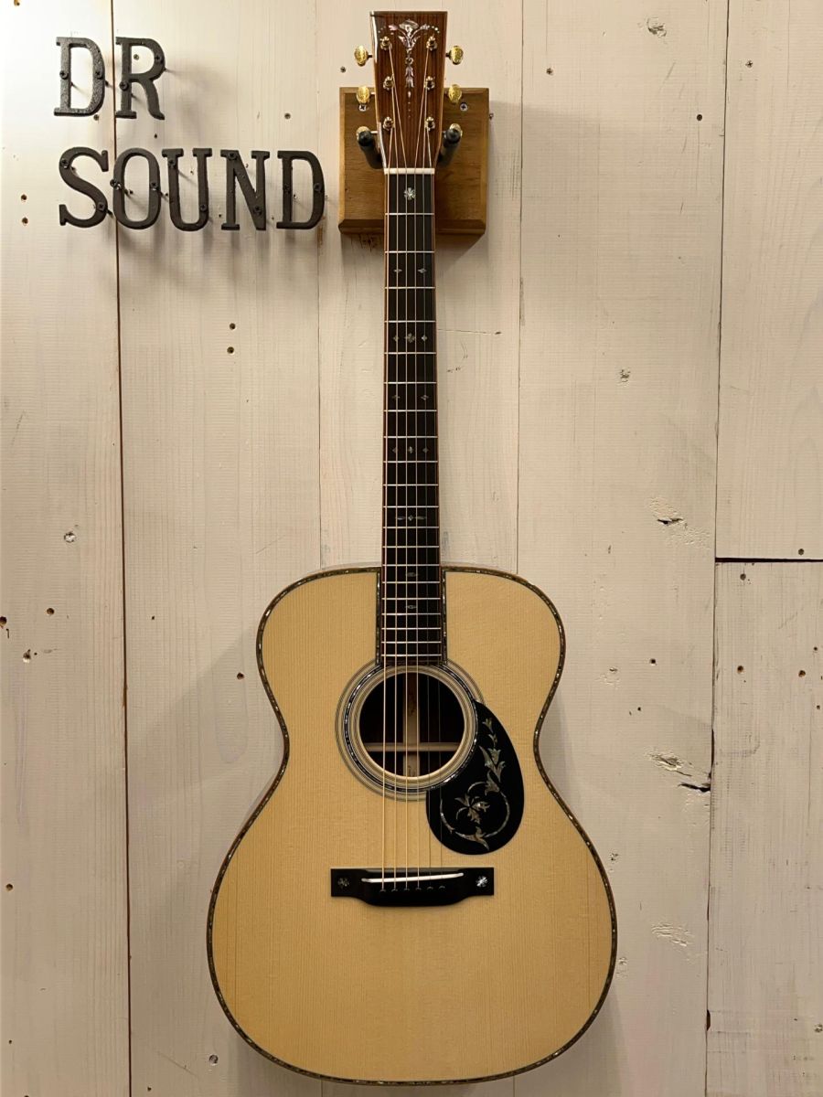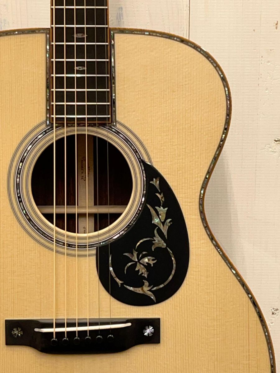 こちらのカスタムはOM-45 Deluxeをインスパイアしたフローラルインレイのピックガード、