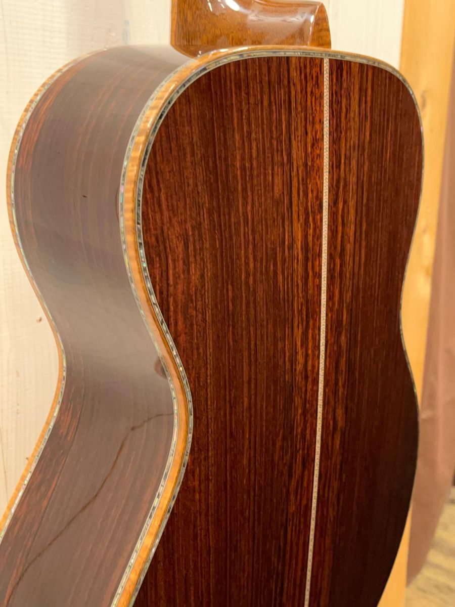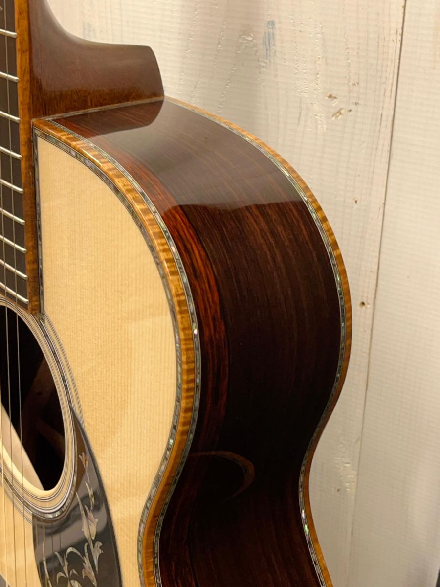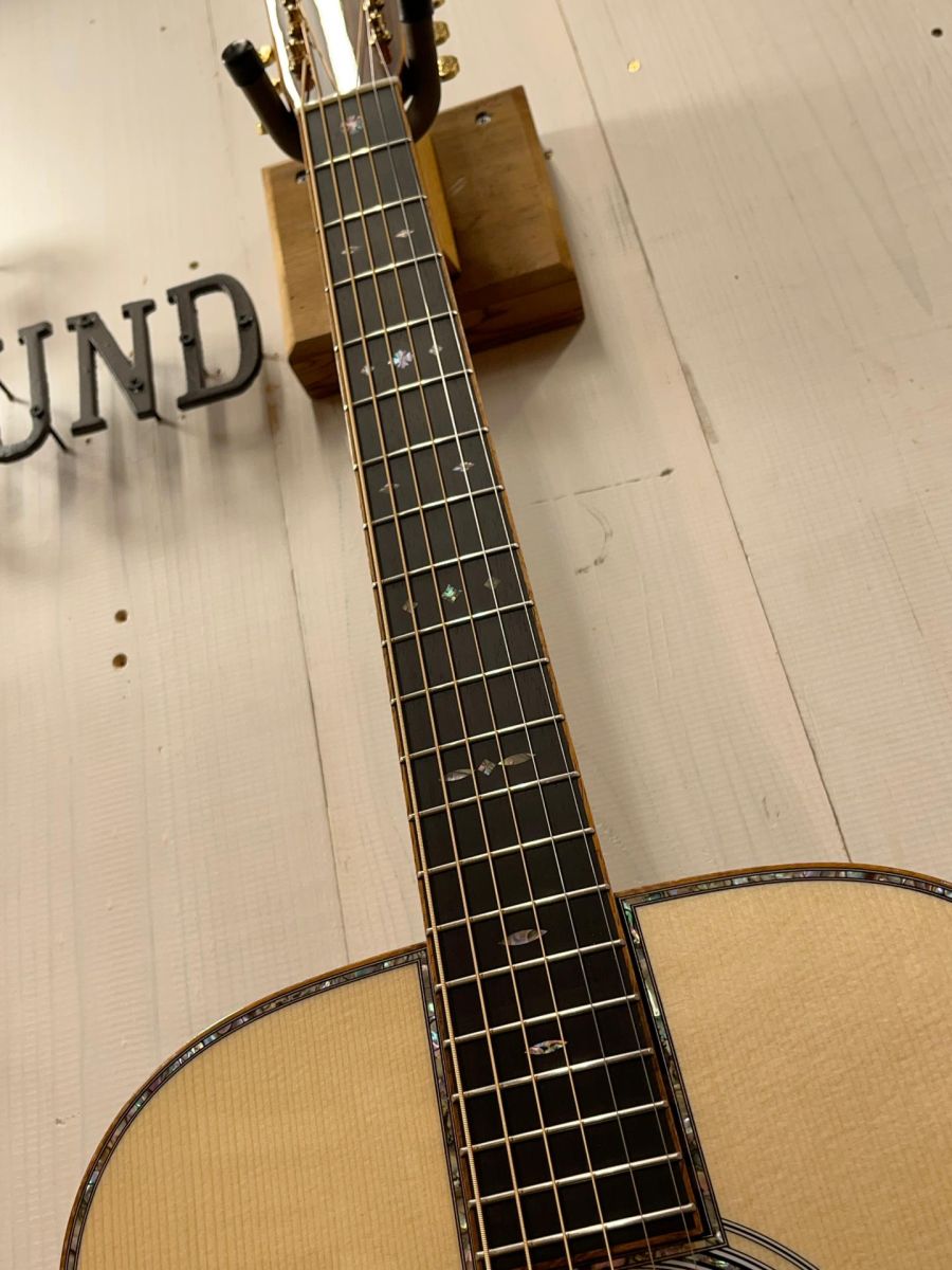 こちらのカスタムはOM-45 Deluxeをインスパイアしたフローラルインレイのピックガード、