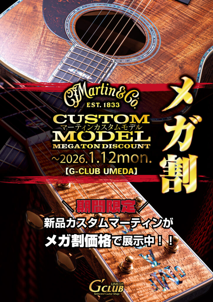 G-CLUB UMEDAカスタムMartinモデル<メガ割> 2025.12.09 期間:1月12日(月・祝日)まで 新品のカスタムマーティンモデルをメガ割価格で展示販売中! カスタムMartinモデル在庫一覧はこちら
