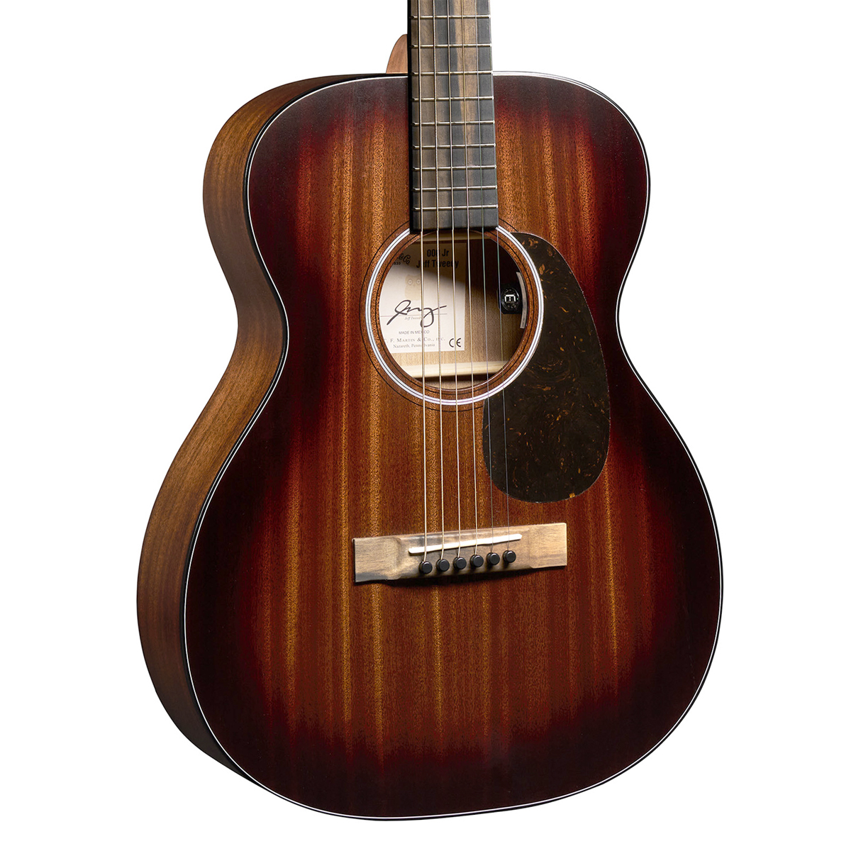 TOP:Mahogany ROSETTE:Single Ring Fiber BRACING PATTERN:X Brace BRACE SHAPE:Scalloped BACK :Mahogany SIDE:Mahogany NECK:Select Hardwood NECK SHAPE:PA Profile NECK TAPER:High Performance Taper FINGERBOARD:East Indian Rosewood SCALE:24.9″ FINGERBOARD WIDTH AT NUT:1 3/4″ FINGERBOARD INLAY STYLE:Old Style 17 FINISH TOP:Satin TOP COLOR:Dark Mahogany NECK COLOR:Dark Mahogany BRIDGE:East Indian Rosewood BRIDGE STYLE:Modern Straightline TUNING MACHINES:Nickel Open Gear / Butterbean knob PICKGUARD:Faux Tortoise ELECTRONICS:Martin E1 CASE:Softshell