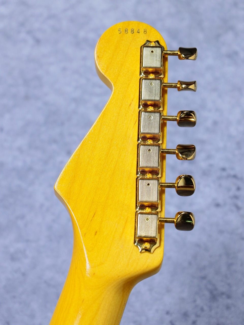 アルダーボディ×ローズ指板ということで、王道の60年代風となっており非常に扱いやすく、探している方も多いこの仕様。厳選されたアルダー2ピースのボディにネックは薄い塗装の触り心地が非常に癖になる1本。指板はホンジュラスローズを採用しており、赤みがかった指板はとても美しい個体です。