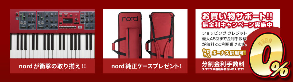 高品質なサウンドはもちろん、高い耐久性と信頼性、豊富なライナップでクラシックから最新のジャンルまでカバーする赤い鍵盤nordがお得に手に入るチャンス!