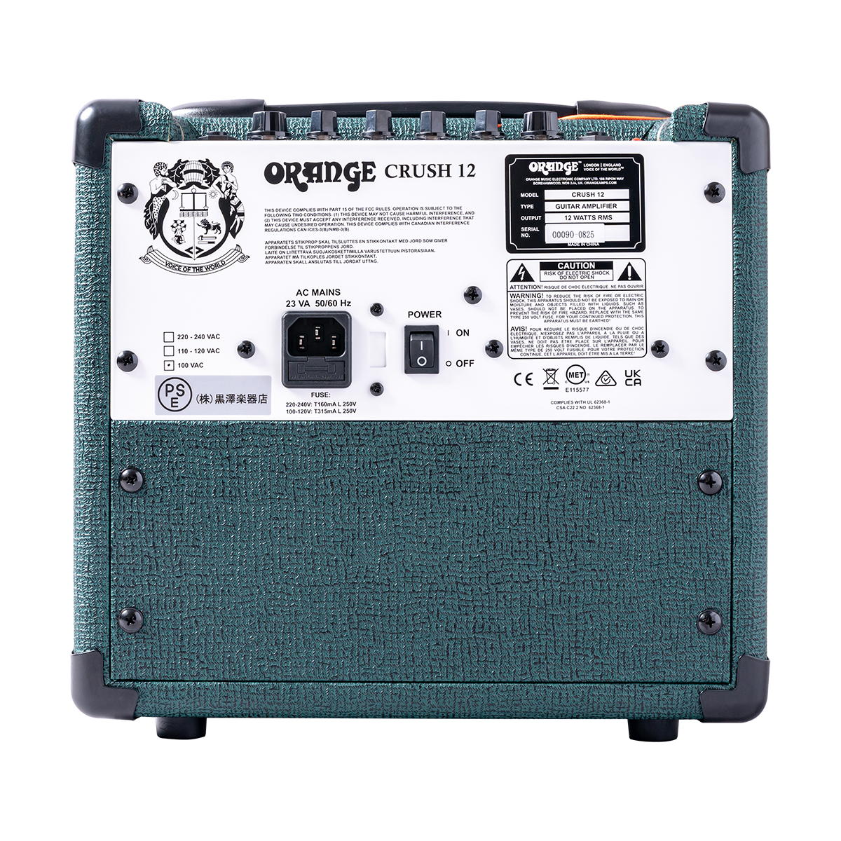 ジャンルを問わず様々なアーティストに愛用されるORANGEアンプの人気機種、CRUSH 12、CRUSH20とCRUSH BASS 25に限定のブリティッシュ・レーシング・グリーンカラーが登場。英国の伝統的カラーである”British Racing Green”トーレックス、気品ある落ち着いたカラーの限定モデルです。