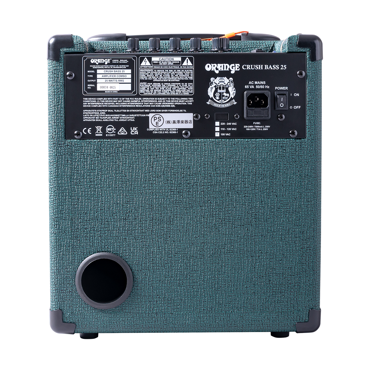 バンドでのベースサウンドに妥協しないなら、自宅での練習でも同じはず。Crush Bass 25はCrush Bassアンプシリーズの中で最もコンパクトなモデルですが、Orange Ampsが世界中の伝説的なベーシストに選ばれる理由でもある、温かみのある丸みを帯びたトーンキャラクターをしっかりと継承しています。この25Wコンボアンプは、オールアナログのシグナルパス、低音域のレスポンスを向上させるポート付きキャビネット、そして高い応答性を誇るアクティブEQセクションを搭載。Crush Bassシリーズ同様、可変パラメトリック・ミッドバンドにより、ベースとトレブルに加えて広範囲の周波数を自在にコントロール可能。クラシックなベーストーンを幅広く再現できるのはもちろん、自分だけのサウンドを作り上げることもできます。また、内蔵チューナー、バッキングトラック用のAUX入力、そしてCabSim回路を備えたヘッドフォン出力も搭載。Crush Bass 25は、すべてのプレイヤーにとって理想的なコンパクトリグとなり、トーンの追求をサポートします。