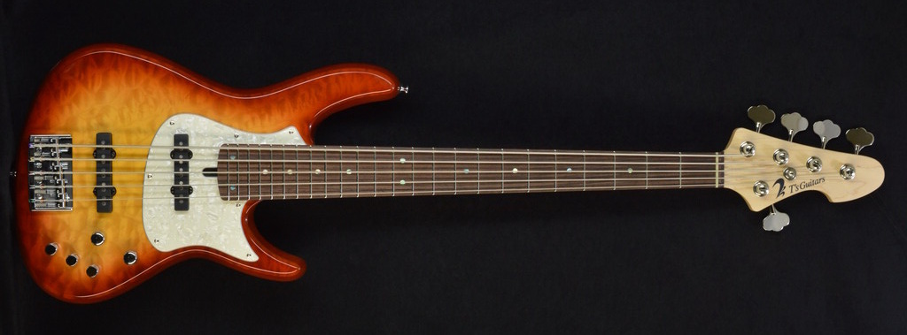 影響を受けたのは主に初期のSchecter USAのコンポーネントギター,Suhr,Sadowsky,