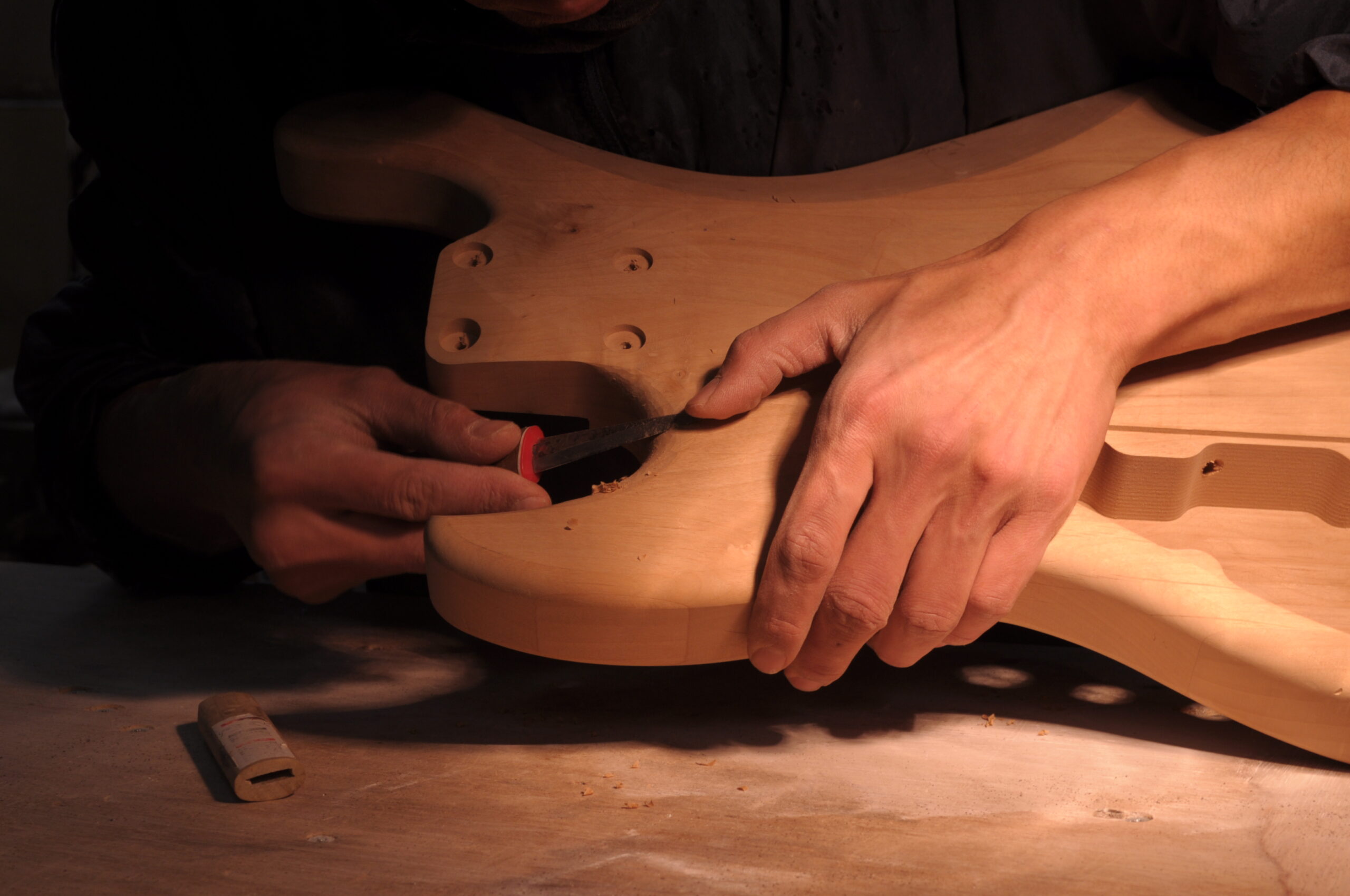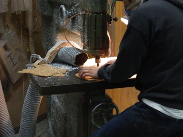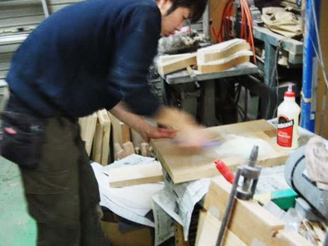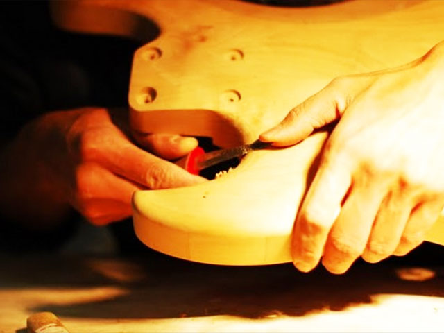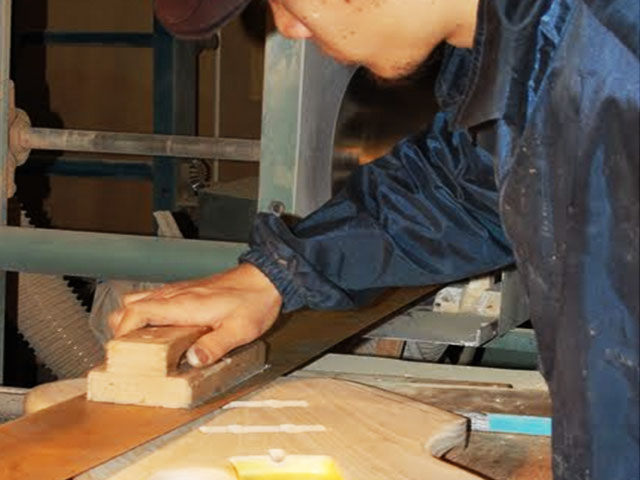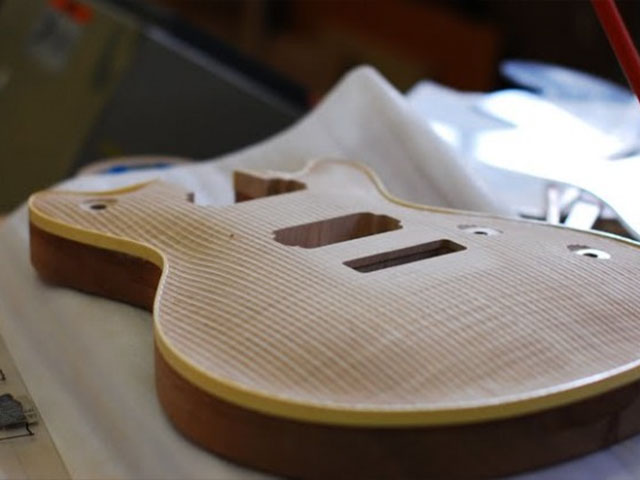 | 加工サイズ調整 | ピンルーター加工 | エッジアール仕上げ | 木地研磨 | ボディトップ面研磨 | きめ細やかな仕上げ |