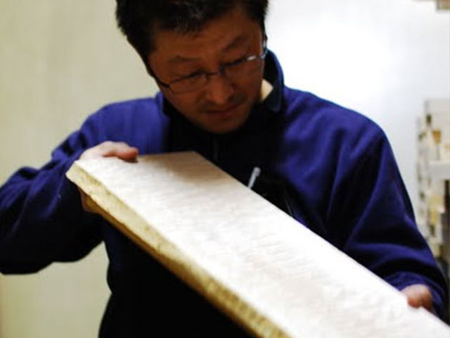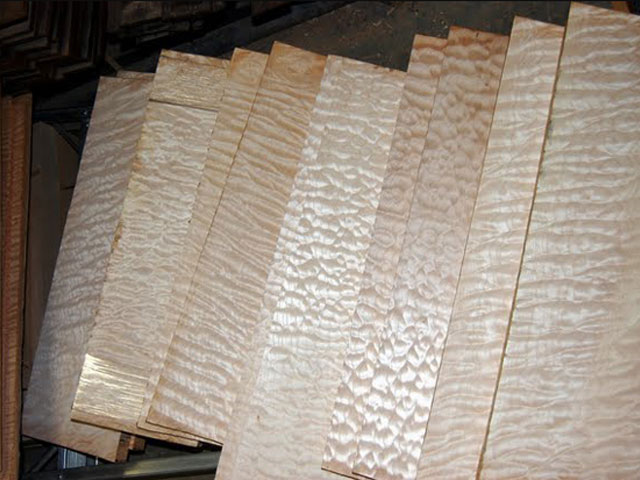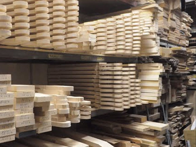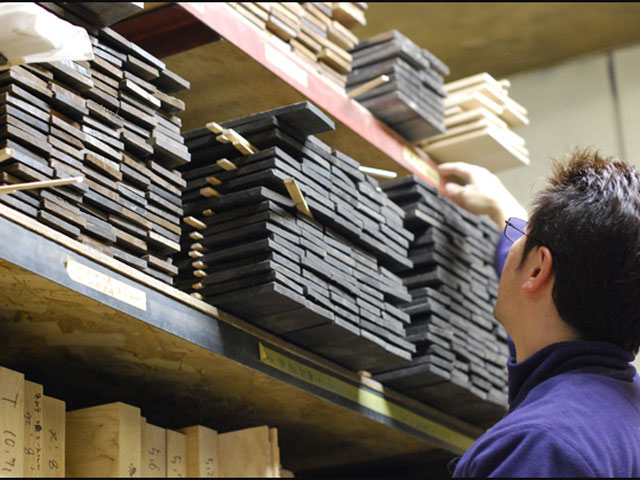 | シーズニングルーム | ネックやボディ材 | 指板材 | キルテッドメイプル | 方向性を見定める | 木材の状態を把握 |