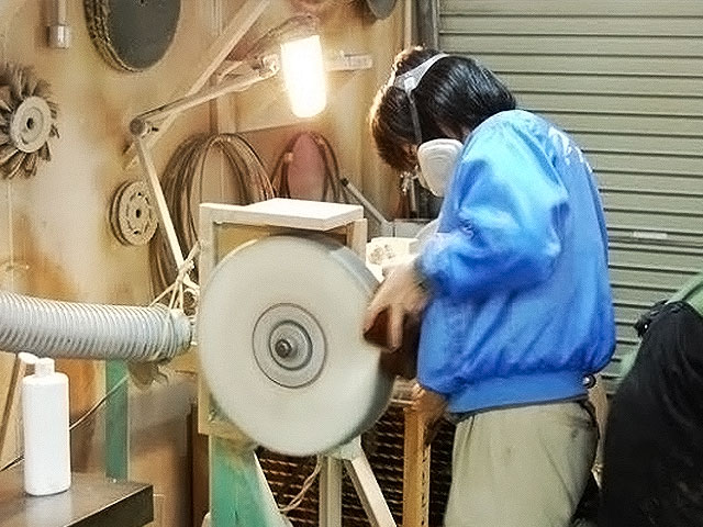 | 手作業細部チェック | 板部分をマスキング | 塗装 | 均一に塗料吹き付け | バフによるツヤ出し | 組み立て |