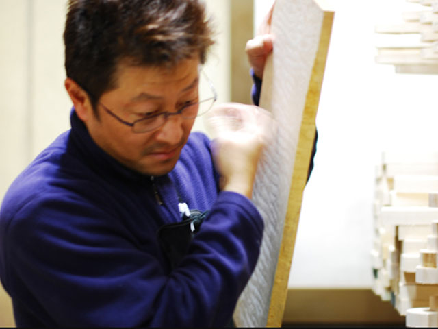 | 不良を見逃さず | 立体的な加工を | 加工後のボディ | 平面的な加工済 | 仕上がりを決める | 接着されたヘッド |