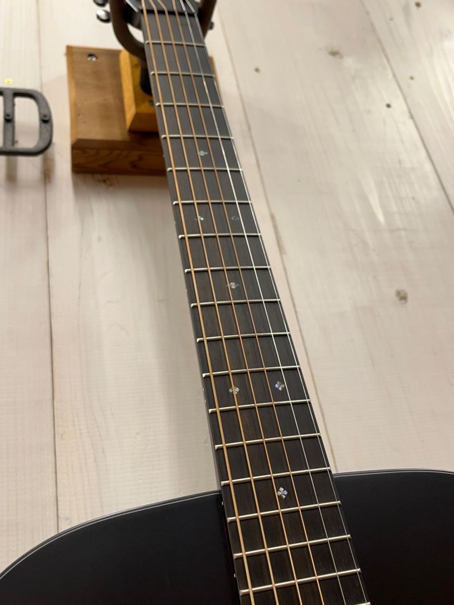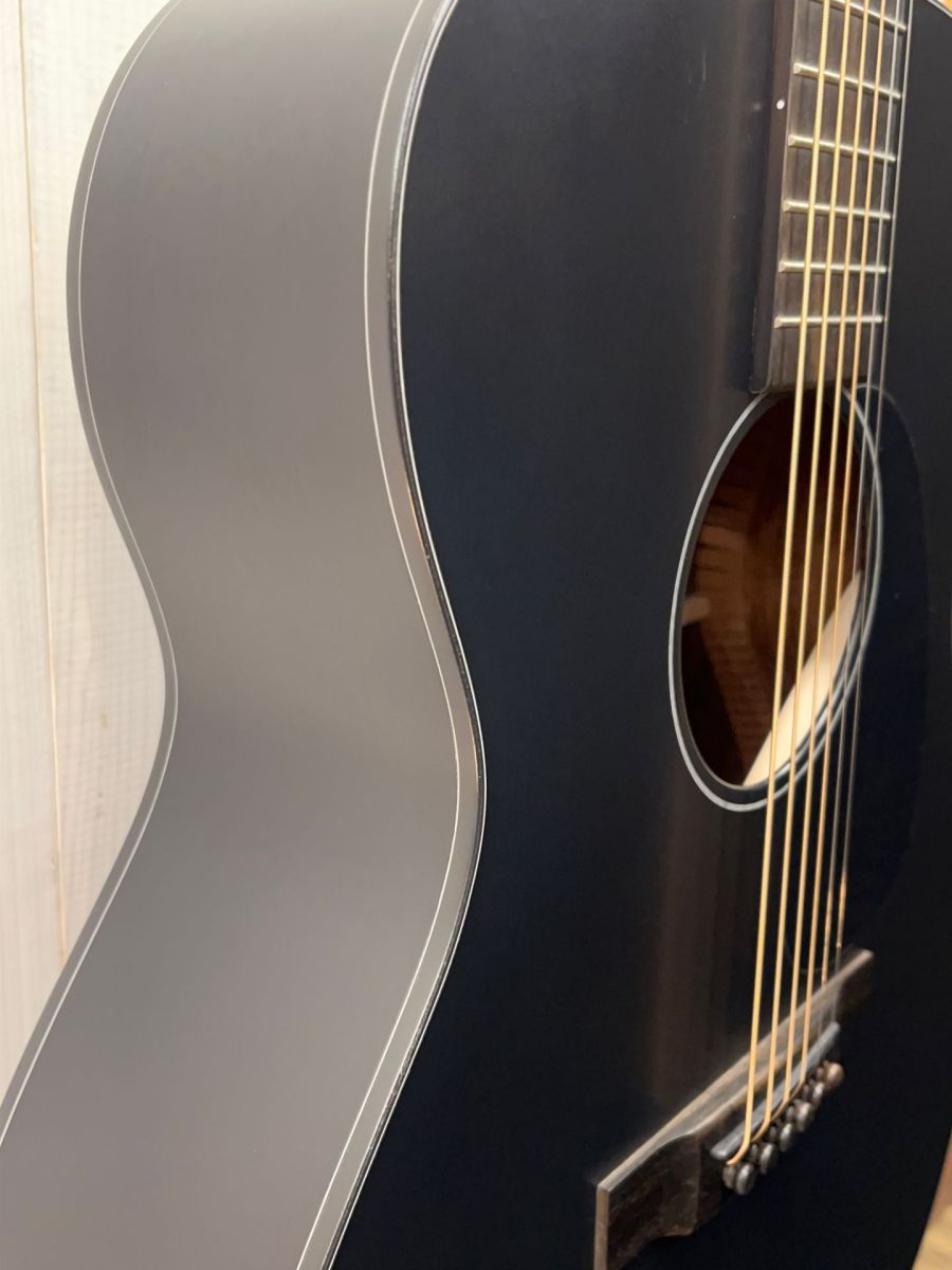 トリプルオーよりも一回り大きいMサイズ(0000)のボディを全身サテンブラックに仕上げた、 超個性的なカスタムモデル。
