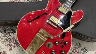 ES-355が初めて登場したのは1958年、当時最先端のセミアコースティックシリーズで最上級モデルとして10本程度作られました。今ではセミアコを象徴するチェリーレッドカラーがシリーズで初めて正式に採用されたモデルでもあります。