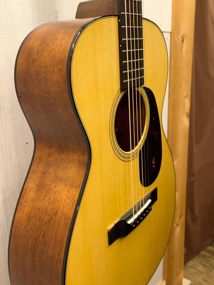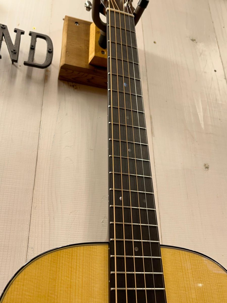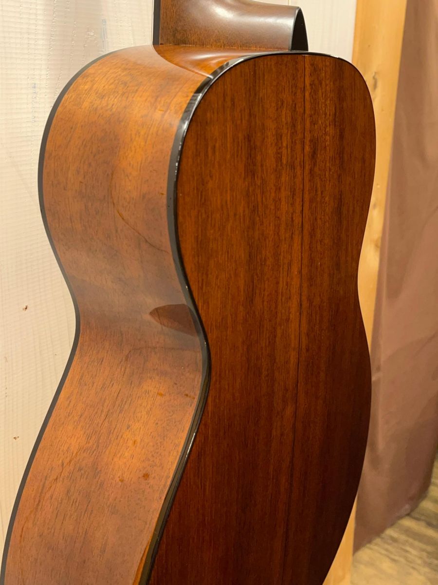 トリプルオーやダブルオーと比べやや厚みのあるボディはコンパクトながら奥行きのあるサウンド、マホガニーのウッディーで柔らかい音色は耳に心地よく、ついつい時間を忘れてつま弾きたくなる魅力的な一本です。