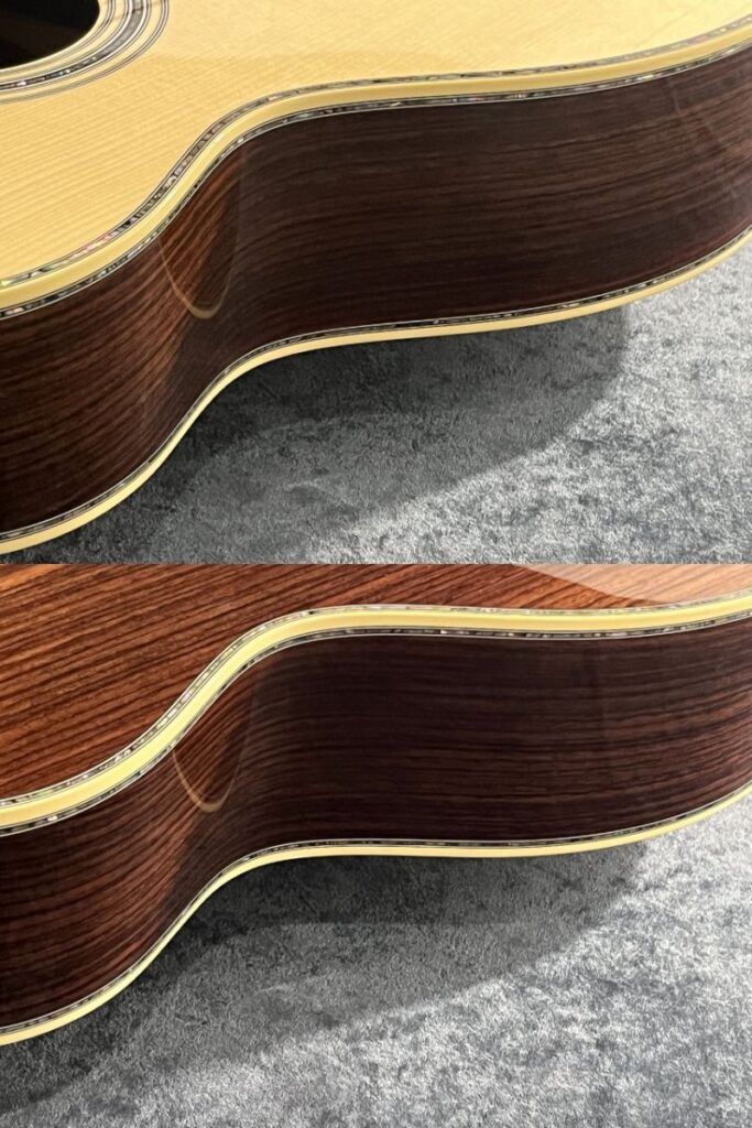 スタイル45の000サイズをベースに、トップにプレミアムグレードのアディロンダック・スプルースを、サイド&バックにも、プレミアムグレードのインディアン・ローズウッド使用したカスタムモデル。
